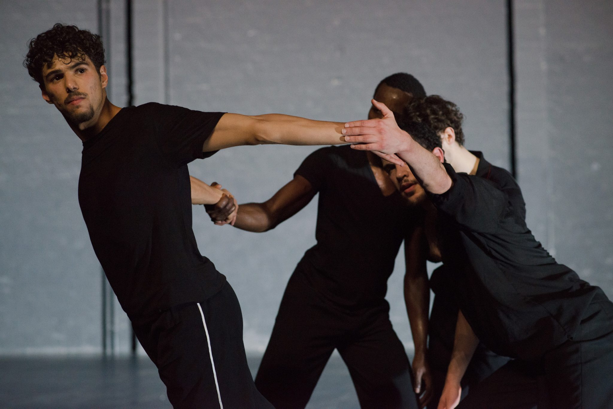 Um die nur über knapp eine halbe Stunde dauernde Einspielung auf ein bühnentaugliches Mindestmaß auszudehnen, griffen De Keersmaeker und Sanchis zu einem Trick. Sie stellten – wie angedeutet – der musikalischen Wiedergabe eine stumme Tanz-Szene voran, die sich erst am Ende erklären ließ. Der Choreografie der vier Männer, die sich dabei sowohl synchron als auch in kleinen eigenen Parts bewegten, folgte ein Solo.