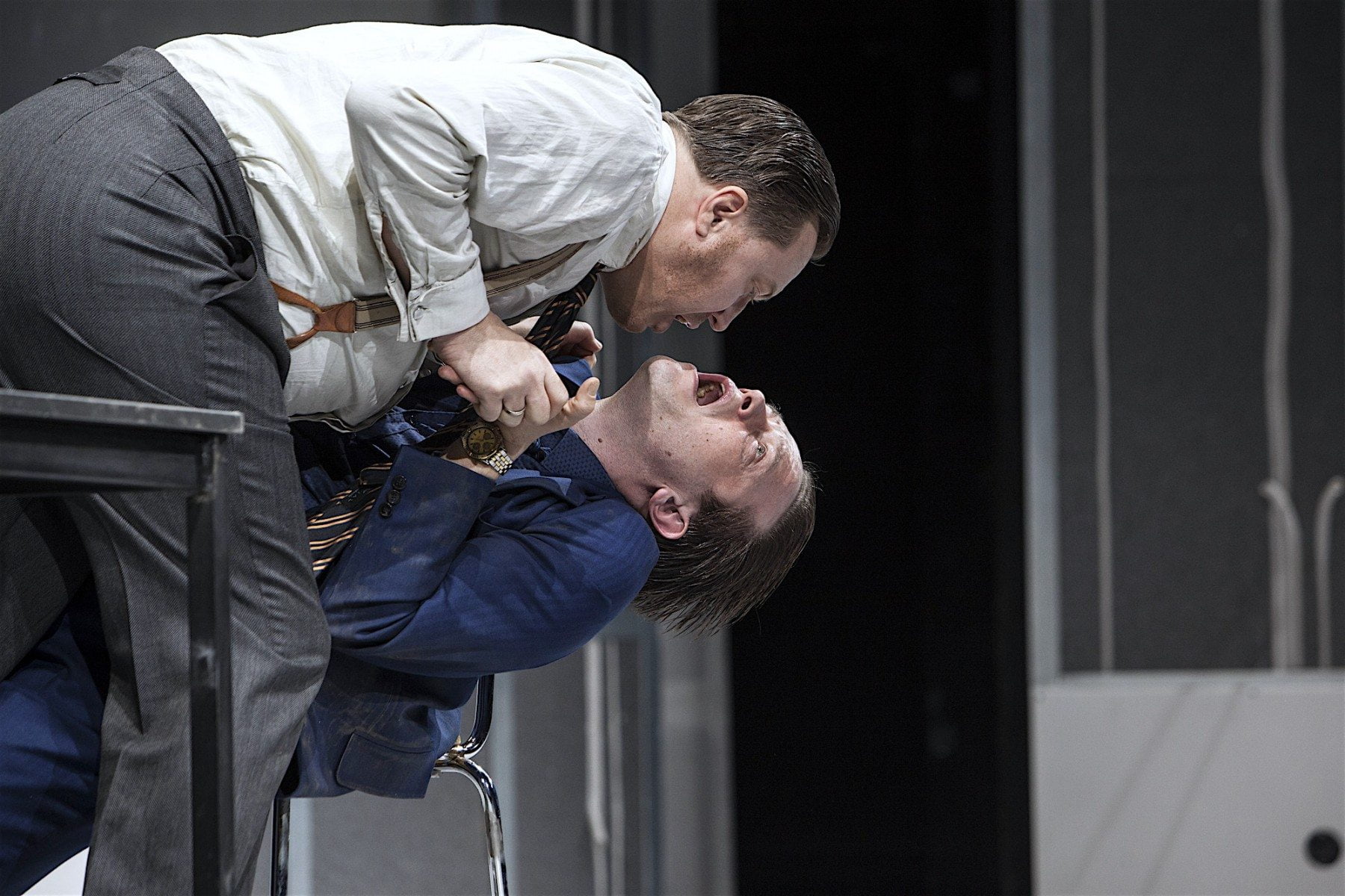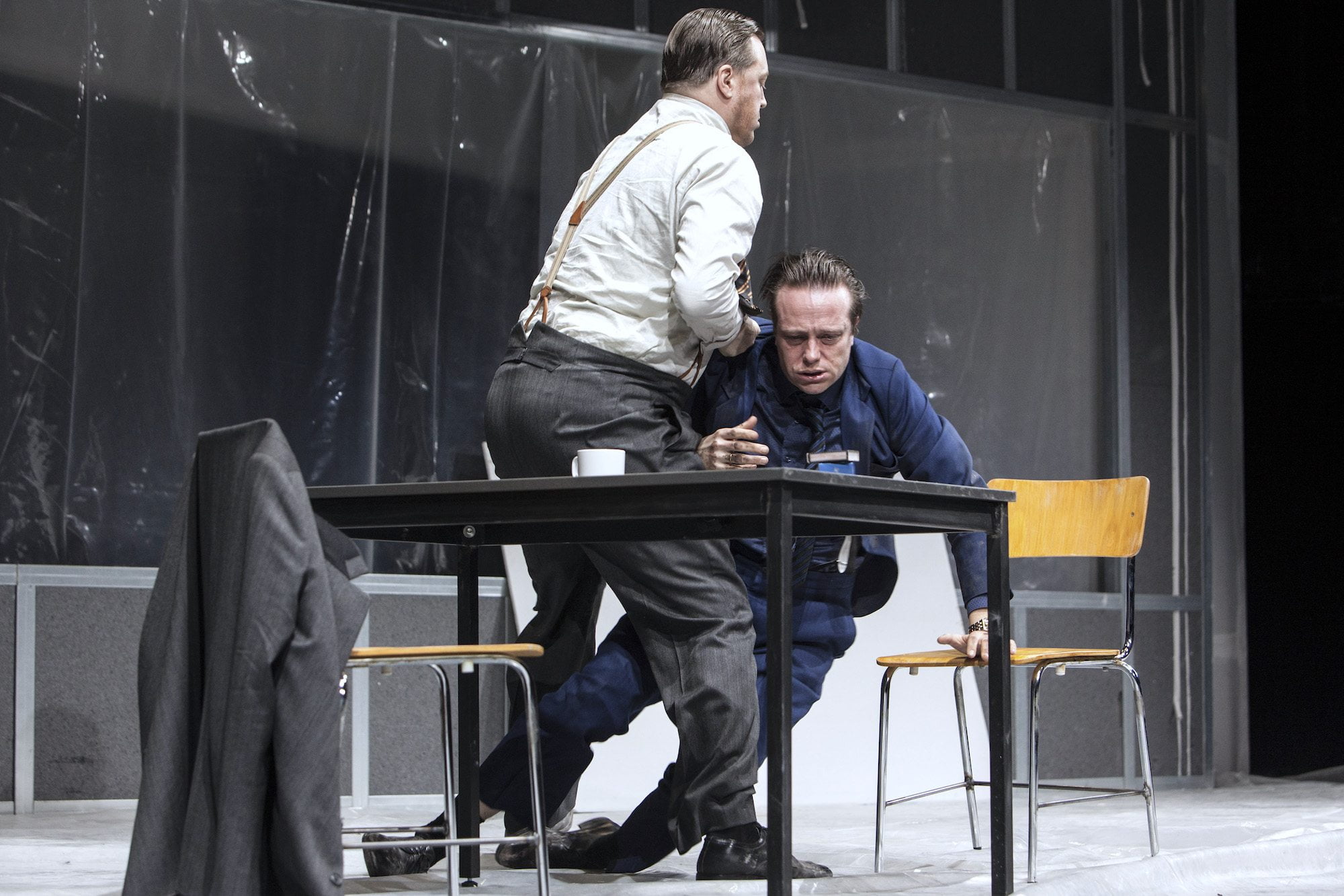 Die psychologische Auflösung, was in Johnson und Baxters Gedanken tatsächlich vorgeht, wird im letzten Aufzug nachgeliefert. Ofczarek kommt hier als schleimender und prügelnder Polizist in Fahrt, obwohl die Kluft zwischen dem Gewalt ausübenden Mann und jenem, der sich beim Verhör „auf die Nette“ ein Geständnis holen möchte, unendlich groß bleibt. August Diehl hingegen changiert gekonnt zwischen einem bockigen und ängstlichen Vielleicht-Vergewaltiger und einem, der aufgrund seiner überlegenen Rhetorik bemerkt, wie er sein Gegenüber in die Enge treiben kann. Es sind nicht die Dialoge – bis auf ganz wenige Ausnahmen zwischen Johnson und Baxter – welche diese Inszenierung spannend machen. Die vielen Gewaltszenen, die auf der Bühne live performt werden, liefern an diesem Abend den stärksten Eindruck ab. Eine Kürzung von 3 ¼ auf 1 ½ Stunden würde der Aufführung gut tun. Der Applaus am Premierenabend war nicht nur höflich, sondern teils enthusiastisch.