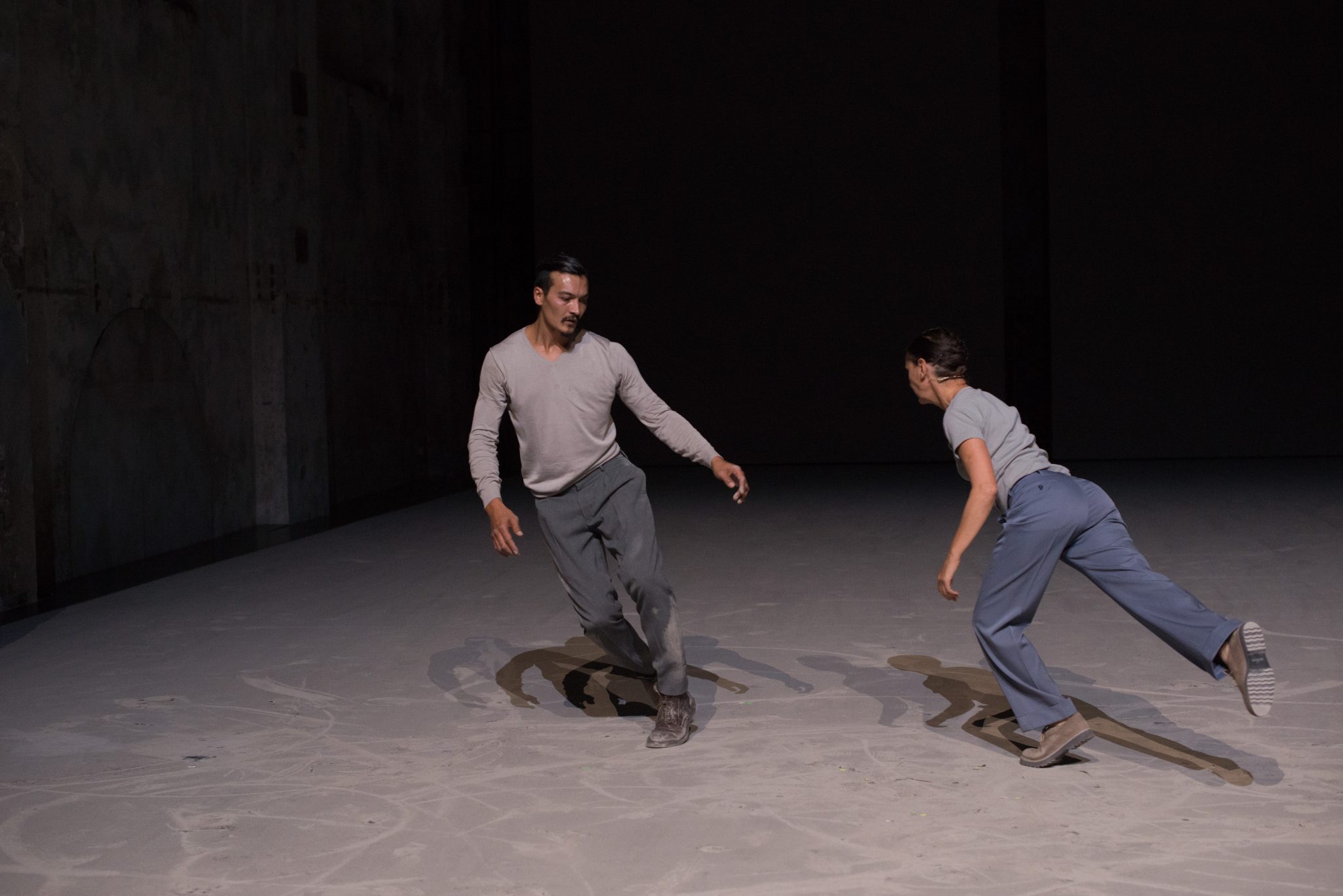 Der Tanz von Keersmaeker und Pomero ist nicht sinnlich, nimmt nicht das Geschehen in der Turmstube voraus, in dem sich die Gräfin und der junge Cornet liebend vereinigen. Es sind Bewegungen, die sich auf die Körperlichkeit der Tanzenden beziehen, die sich wie zufällig immer wieder treffen, um kurze synchrone Momente wiederzugeben. Die Kostüme, graue Stoffhosen und hellgraue Pullover bzw. Hemden sind neutral angelegt. Sie sind nicht männlich oder weiblich konnotiert und auch der Tanz selbst changiert beständig zwischen den Geschlechtern. De Keersmaeker, die Frau, erscheint oft als die stärkere, standfestere Person, während Pomero immer wieder auf den Boden sinkt. Im Gegensatz zu ihr agiert er jedoch raumgreifender. Keiner von ihnen gewinnt je die Oberhand, zeigt sich als das starke Geschlecht. Ein Umstand, der sich auch in der Ballade von Rilke wiederfindet.