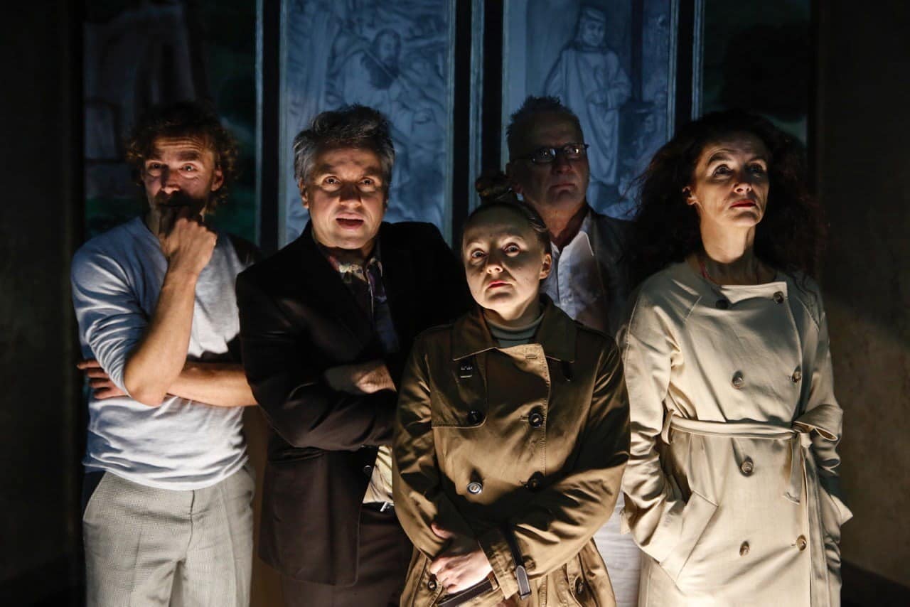 Die wissenschaftliche Crew, die er dafür auftreten lässt, hat es in sich. Jeanne-Marie Bertram, die erst vor Kurzem ihren Abschluss am Max-Reinhardt-Seminar absolviert hat, muss in der Rolle von Frau Prof. Bentley mit technischen Schwierigkeiten ihres Laptops kämpfen. Roman Blumenschein mimt einen deutschen Kollegen, der im Gegensatz zum österreichischen Institutsvorstand (Martin Schwanda sollte sich seine Rollen als Wiener Originale patentieren lassen) die Forschungsarbeit sehr ernst nimmt. Prof. Flambertin wird von Jens Ole Schmieder gespielt. Ganz der französische Lebemann, sieht er in seinen Untersuchungen mehr Drolerien als grausliche Bestrafungsrituale in Boschs Bild, während seine Kollegin Prof. Atlantico-Morotzki (Doina Weber) sichtlich erfreut ist, ihn wieder einmal zu treffen. Kirstin Schwab rotzt und hustet, dass es einem nur so grausen kann und beharrt als Prof. Mackenbrock auf die Weltuntergangssicht im Zeitalter von Bosch. Petra Staduan brilliert nicht nur in der Rolle von Caroline, der Kunstgeschichte-Studentin. Sie steht auch als Frau Stukowski, eine demotivierte Hilfskraft, sauertöpfisch dem heillos überforderten Institutsvorstand zur Seite.