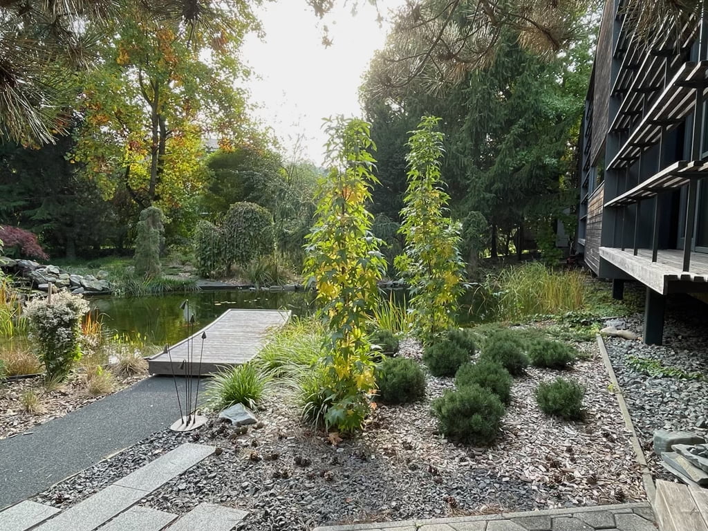 Die warme Herbstsonne lässt die bunten Blätter im Hiša-Denk-Garten leuchten. Am benachbarten Grundstück kann man sehen, dass das Stammhaus bald mit gleich gesinnter Nachbarschaft aufwarten wird. Die Ungezwungenheit, die das Restaurant bei jedem Besuch vermittelt – trotz der außergewöhnlich hohen Qualität der Speisen hat man nie den Eindruck, sich elitär verhalten zu müssen – garantiert, dass man wiederkommt. Spätestens in der nächsten Jahreszeit.