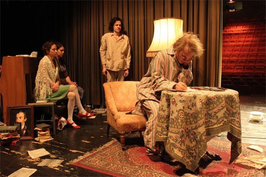 Dass die Umsetzung der Idee so meisterhaft gelingt, liegt aber – wie sollte es auch anders sein – an den spielenden Personen. Und wie sie spielen! Hannes Pendl und Sebastian Zeleny sprühen nur so vor Spielfreude und reißen das Publikum in ihrem Energiefluss unaufhaltsam mit. Johanna Elisabeth Rehm verkörpert im Gegensatz dazu schon optisch vielmehr die Zerbrechlichkeit des jungen Komponisten und Erwin Belakowitsch kehrt in dieser Rolle zurück nach Wien, wo er seine Ausbildung als Bariton absolvierte. Dass er gemeinsam mit Stephen Delaney „Die schöne Müllerin“ als CD eingespielt hat, war wohl der Grund ihrer beider Verwendung bei dieser Produktion, wobei hinzugefügt werden MUSS: Liederabende sah und hörte ich schon viele, aber ich entdeckte noch bei keinem Sänger eine derart komödiantische Ader wie bei Belakowitsch. Sein Mienenspiel ist seiner Stimme ebenbürtig, die geschmeidig und klar, zärtlich und schlank all jene Emotionen transportieren kann, die Schuberts Liedern eingeschrieben sind. Fast möchte man ihn als singenden Schauspieler rühmen und nicht als schauspielenden Sänger. Eine meisterliche Besetzung!