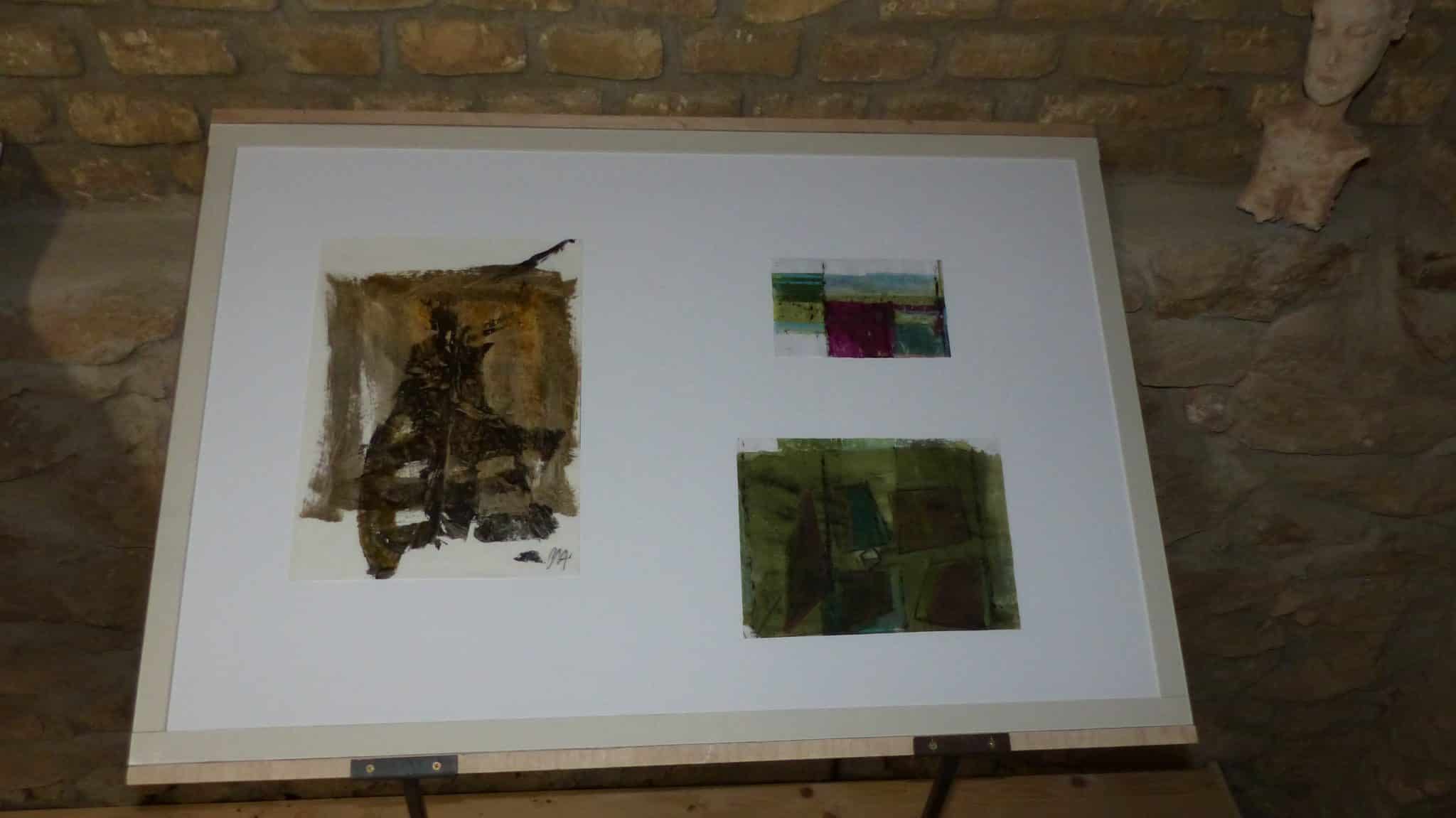 Auf Papier gesetzte, auf den ersten Blick rasch gefertigte Zeichnungen lassen, so wie sie präsentiert wurden, Rückschlüsse auf gewisse, immer wieder kehrende Bewegungsabläufe zu. Bei anderen Blättern erkennt man das Ringen um die größtmögliche Ausgewogenheit in der Komposition, das perfekte Zusammenspiel der verschiedenen Gestaltungselemente. Diffizile Kompositionen, zusammengesetzt aus unterschiedlichen, oft armen Materialen machen einzelne Werke zu etwas „Exquisitem“, wie es eine Dame an dem Abend ausdrückte. Das ist tatsächlich das, was Hartmann im Sinn hat. Mit der eigenen Kreativität und der Ausführung etwas zu schaffen, was künstlerisch Bestand haben kann und kostbar wird. Sein Ideenfundus wird aus vielerlei Quellen gespeist. Europäische aber auch außereuropäische Kunstwerke, die über Jahrhunderte oder gar Jahrtausende auf uns gekommen sind wecken sein besonderes Interesse. Die Farben, die Formen im Speziellen erfahren dann bei ihm eine Neuauflage in einem völlig anderen Kontext als dem Historischen. Autolacke, verdünnt mit Nitro und Teerfarben ergeben eine ganz spezielle Farbigkeit, eine Farbskala, innerhalb der sich das Oeuvre von Hartmann ausbreitet. Brillanz hier, ein wenig Glitzer da, einiges matt, Licht saugend. „Die Farbe erinnert mich an mein erstes Auto, einen Fiat“ erzählt eine Dame während eines Gespräches und zeigt, wie individuell die Rezeption von Hartmanns Bildern gestaltet werden kann.
