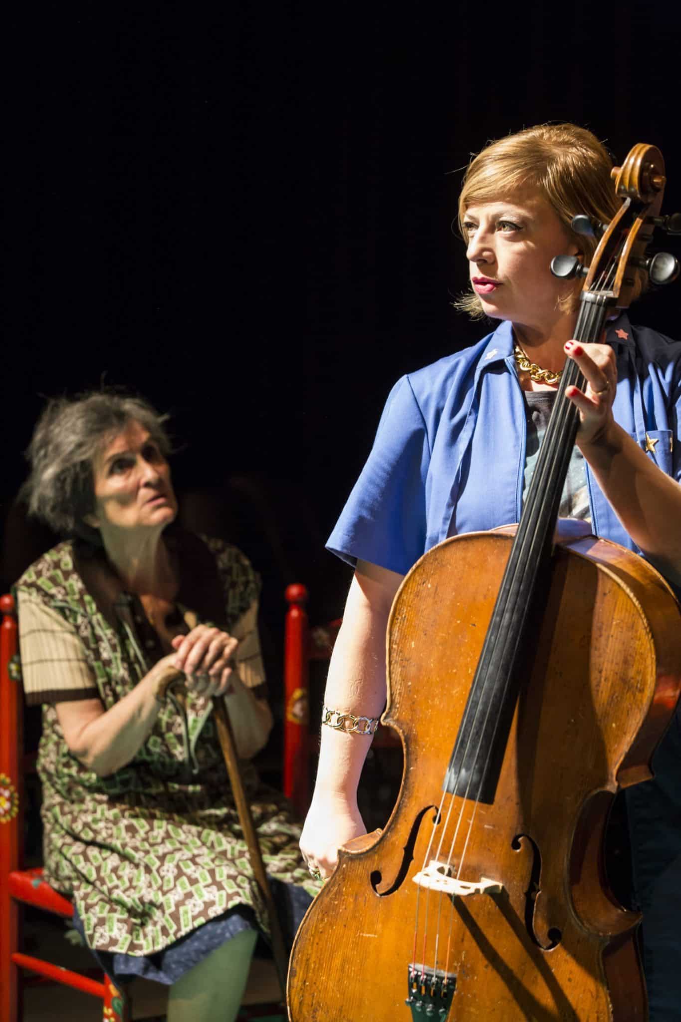 Das Duo Catch-Pop String-Strong ist dabei nicht nur an seinen Instrumenten, dem Cello und der Bratsche tätig. Rina Kacinari und Jelena Poprzan agieren zugleich auch als die beiden aus Ex-Jugoslawien stammenden Pflegerinnen Svetlana und Ivanka. Sie wurden von Günther (Thomas Richter) auf den Hof geholt, um sich um seine Schwiegermutter, eine alte Bäuerin, zu kümmern. Linde Prelog charakterisiert die langsam senil Werdende so, dass man meint, man hätte die alte Weichsenriederin direkt vom steirischen Hof nahe der Teichalm nach Wien auf die Bühne geholt. Mit unglaublichem Witz und noch unglaublicherer Sprachsicherheit navigiert sie das Geschehen rund um die Geschicke des Hofes, auf dem es trotz ihrer erwachsenen Kinder noch keine Nachkommen gibt. Zutiefst im Oststeirischen Sprachacker grabend, schimpft und jammert sie vor sich hin und zeigt mit ihrem Schmäh, ihrer Bauernschläue und ihren bodenständigen Wertvorstellungen den Wahnsinn der übertechnisierten, gnadenlosen Arbeitswelt auf. Bedrohlich saust dabei in der ein- oder anderen Szene ihr Stecken über den Kopf ihrer nichtsnutzigen Nachkommen. Die Regie von Dora Schneider setzt auf Brachial-Realistisches.
