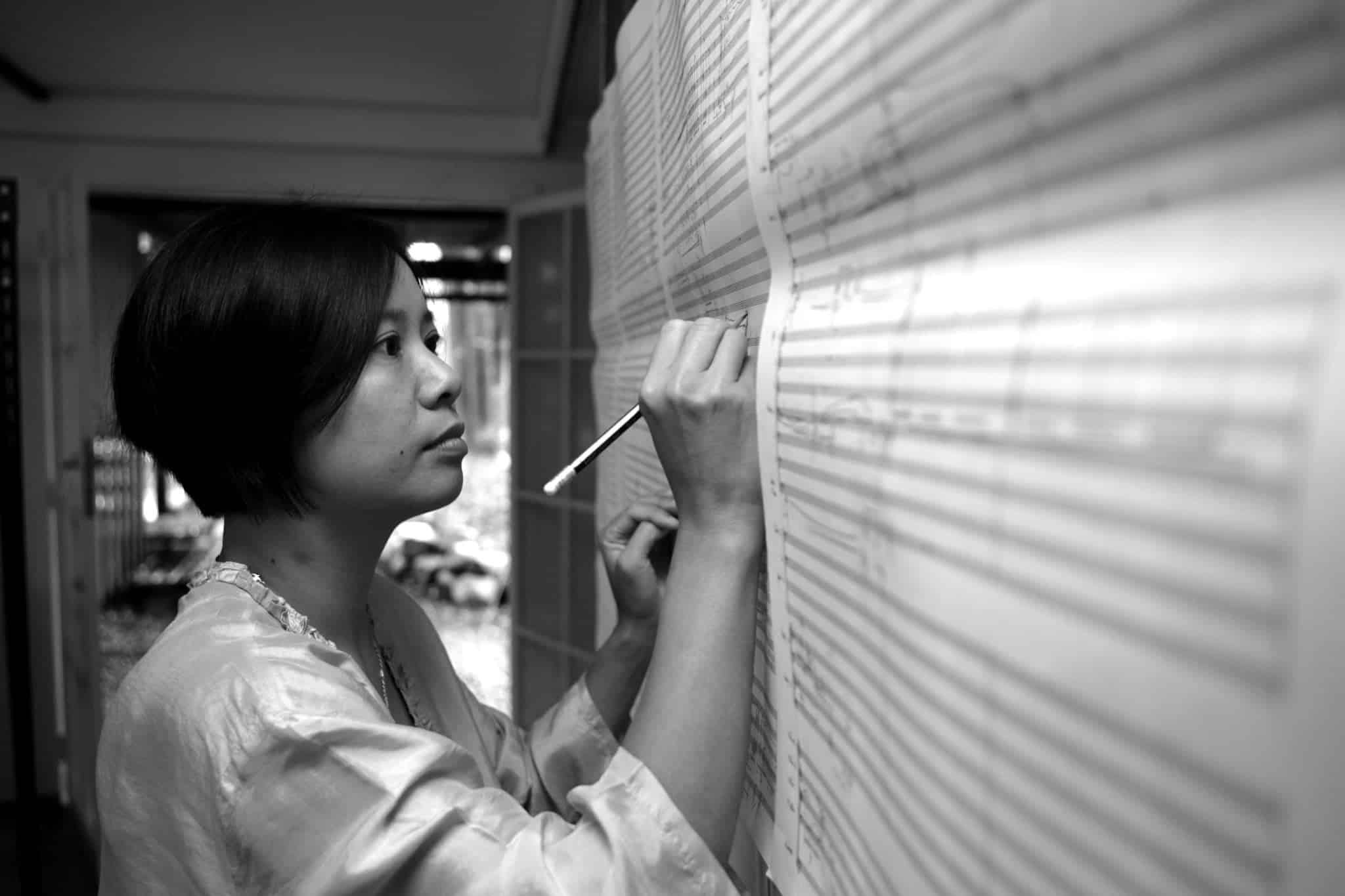 Liza Lim schuf mit „The Weaver´s Knot“ (2013) ein Werk, das mit einem torkelnden, fast trunkenen Bratscheneinstieg beginnt. Das Auf- und Abschnarren des Cellos ist ein charakteristisches Hörerlebnis, neben hohen, beinahe schon schmerzhaften, lang angehaltenen Klängen. Aber auch Duette oder kurze Obertoneinsätze in den einzelnen Instrumenten werden hörbar. Die schöne Assoziation, die sich auf eine traditionelle Technik in der Textilindustrie bezieht, in der Fäden effektiv zusammengebunden werden, wird in der Verschränkung der unterschiedlichen Linien des Werkes gut nachvollziehbar.