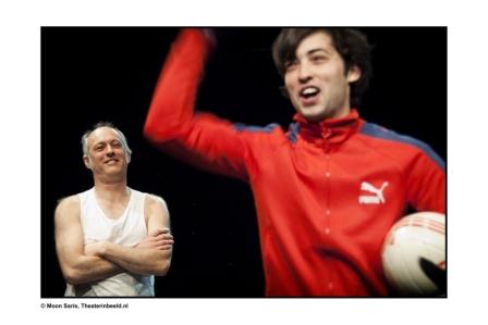 Le début était léger, facile et détendu. Avec le recul, le voyage de Gert en Israël, entrepris tout de suite après avoir terminé l’école, cette aventure qui a duré un certain temps pendant lequel son fils a été conçu, s’avère être le résultat d’un simple coup de tête : Elevé dans la religion chrétienne, ce n’étaient pas les sympathies pour le mouvement sioniste qui l’avaient incité à partir pour le sud, mais c’étaient plutôt le ciel bleu et les belles femmes. Les expériences de Gert dans le domaine «sexe, drogues et rock an roll» où alors la scène ou les deux ont fait une démonstration de coaching du fils au football par le père ont beaucoup fait rire. Mais sans qu’on s’aperçoive, la légèreté et la gaieté de cette performance sont parties sans crier gare. Ilay commençait à raconter qu’il a subi des représailles de la part de ses camarades au club de football, qu’ils ont essayé de lui faire peur en le menaçant, parce qu’il était juif. Au départ, son père voulait lui faire croire que ces agressions n’étaient pas motivées par l’antisémitisme et qu’il ne s’agissait que de bêtises d’enfants. Et que les garçons n’avaient pas conscience de ce qui se cachait derrière tout cela. Il est allé jusqu’à ignorer la croix gammée, peinte avec des excréments sur sa voiture et prise en photo par Ilay. Il a cherché des arguments lui permettant d’éviter de définir toutes ces actions autrement que de persécutions de juifs. Jusqu’à ce qu’Ilay raconte en langue néerlandaise l’épisode où ses «copains» l’ont coincé pour le déshabiller et lui renverser un seau d’eau glaciale sur la tête. Ilay soulignait son discours incisif en disant après chaque phrase à son père «translate» et en même temps il se débarrassait de ses vêtements pour finir tout nu et fragilisé sur la scène. Après s’être renversé un seau d’eau sur sa tête, il demanda à son père durement de se déshabiller à son tour pour que, ne serait-ce qu’une fois dans sa vie, il puisse se mettre à sa place et comprendre sa situation à lui. La situation d’un juif en Hollande qui, comme l’on fait tant d’autres quelques générations avant lui, craignait pour sa vie. La rupture entre père et fils était consommée. L’un, sans protection, rempli de colère et de haine, l’autre, consterné, plein de compréhension mais sans accepter la haine.