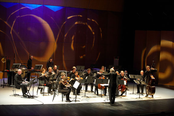 Mit „Giano,repainted“ von Cattaneo wurde der Abend eröffnet. Der Grundgedanke, zwei parallele Erzählflächen aufzubauen, dessen Idee der Komponist dem zweigesichtigen Janus entnommen hat, der sowohl zugleich in die Zukunft als auch Vergangenheit blicken kann, wurde durch eine einfache, aber logische und effektvolle Instrumentierung und Anordnung des Ensembles umgesetzt. Zwei idente Quartette, bestehend aus je 2 Flöten, Klarinetten, Geigen und Klavieren standen sich spiegelverkehrt gegenüber und setzten Cattaneos Idee von multipler Wahrnehmung in Musik um. Dieser Umstand, und auch die Komposition, welche mehr verschleierte als offenlegte, waren der Auslöser dazu, dass eine permanente Infragestellung der soeben Gehörten und Gesehenen zustande kam. Wo ist Gestern und Heute, wie unterscheidet Cattaneo diese Qualitäten, wo sind Unterschiede und wo ist Identisches zu finden? Ein Kunstgriff, der seine Wirkung tat.