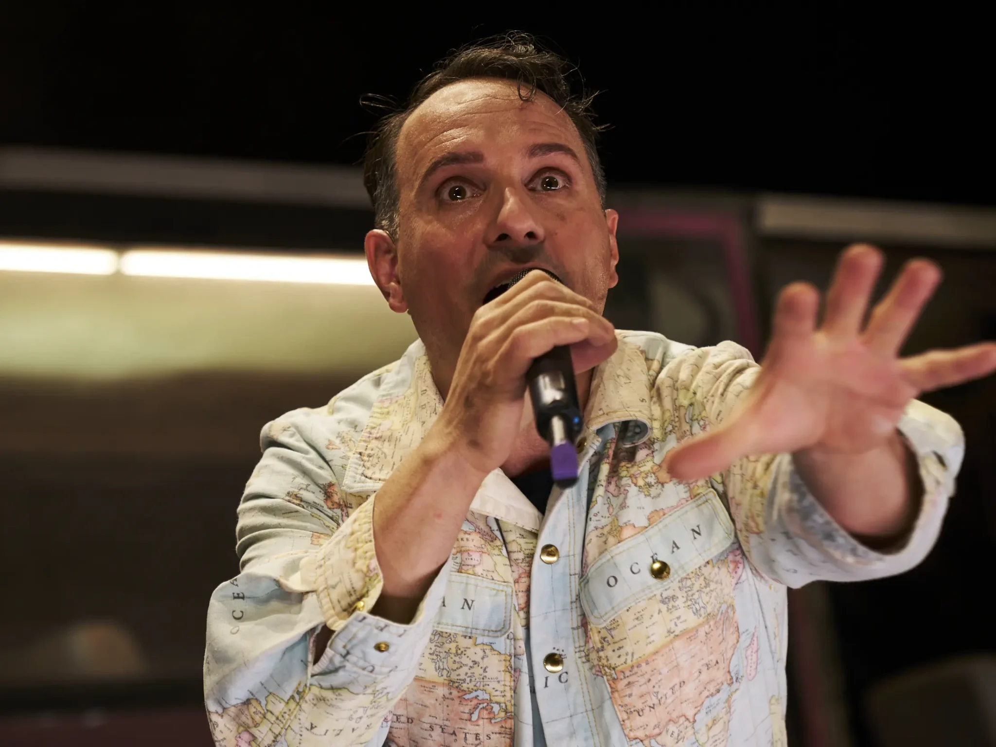 Hinter dieser Fröhlichkeit und seinem unbändigem Spielwillen, der auf hohe Schauspielkunst trifft, verbergen sich im Text jedoch zugleich auch die tiefsten Abgründe, mit welchen unsere Gesellschaft derzeit zu kämpfen hat: Eifersucht, Bösartigkeit, Sadismus sowie das Erstarken rechtsradikalen Gedankenguts. Es ist nicht nur das performative Können Hanushevskys, das so fesselt. Der Aufbau seiner „Erzählung“, die er in eineinhalb Stunden abhandelt, sodass man am Ende das Gefühl hat, sich doch eben gerade erst auf seinem Platz bequem gemacht zu haben, ist schlichtweg atemberaubend. Die Mischung aus Comedy, grandiosen musikalischen Nummern, vorgetragen in gänzlich unterschiedlichen Stimmcouleurs, seine auf Schenkelklopfen angelegten Witze, die schwärzer als schwarz nicht sein können – all das fügt sich zu einem Theatererlebnis der Sonderklasse. Selbst der Höhepunkt, die Rede Charly Chaplins als großer Diktator, bekommt unter seiner Interpretation keinerlei epigonenhaften Touch. Hoch über der Bühne auf der Plattform eines kleinen Hebekrans schmettert er eine martialische, dadaistische Verballhornung nieder, in der gut die „Strrrrrrafffe“ und der „Volkskanzlerrrr“ hörbar werden. Charly Chaplin würde nicht nur diese Szene laut akklamieren.