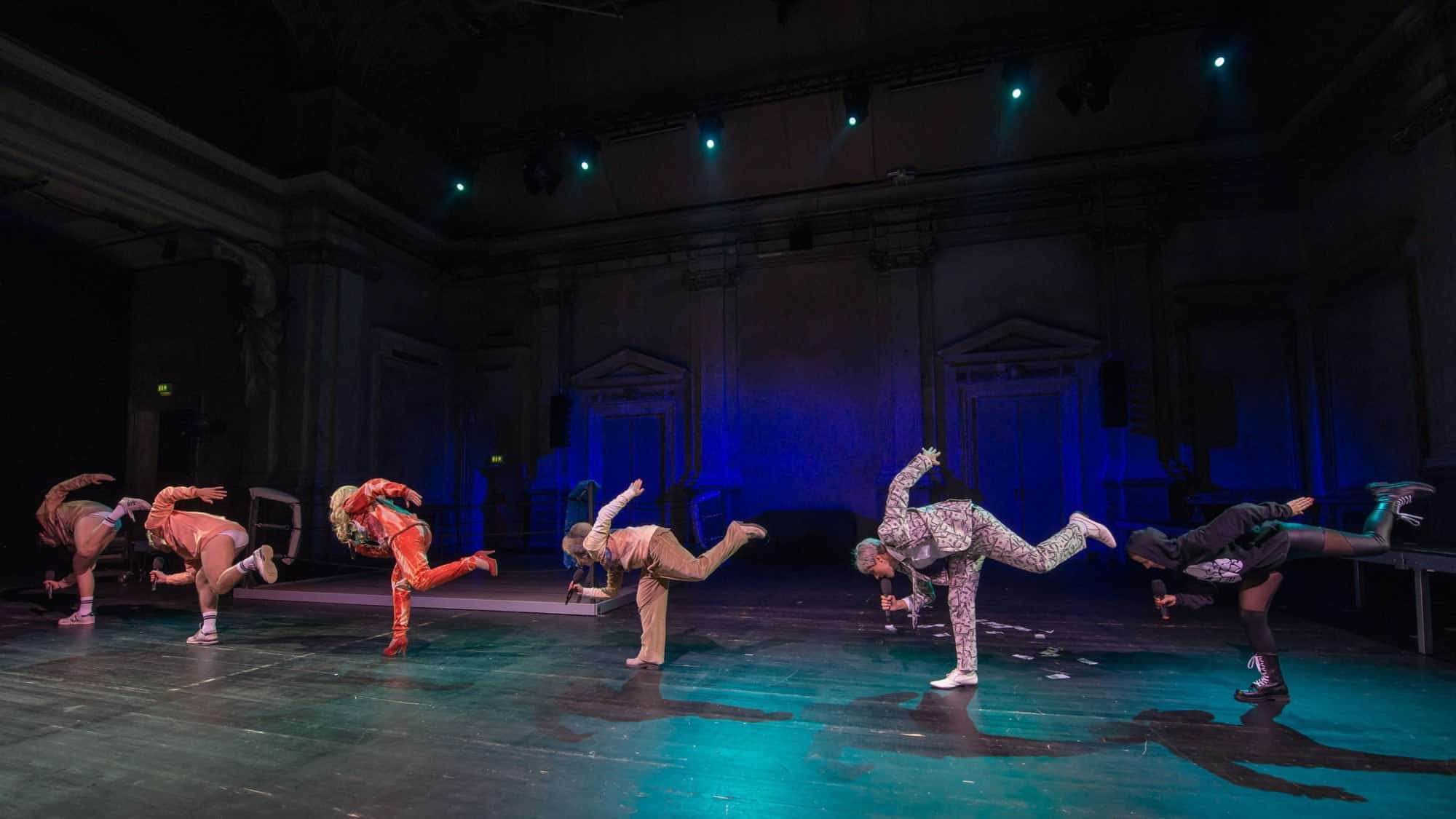 Der große Marsch | Wolfram Lotz Lukas Weiss, Sören Kneidl, Eva Maria Schindele, Constanze Winkler, Kristóf Gellén, Teresa Hager (c Georg Soulek / Burgtheater)