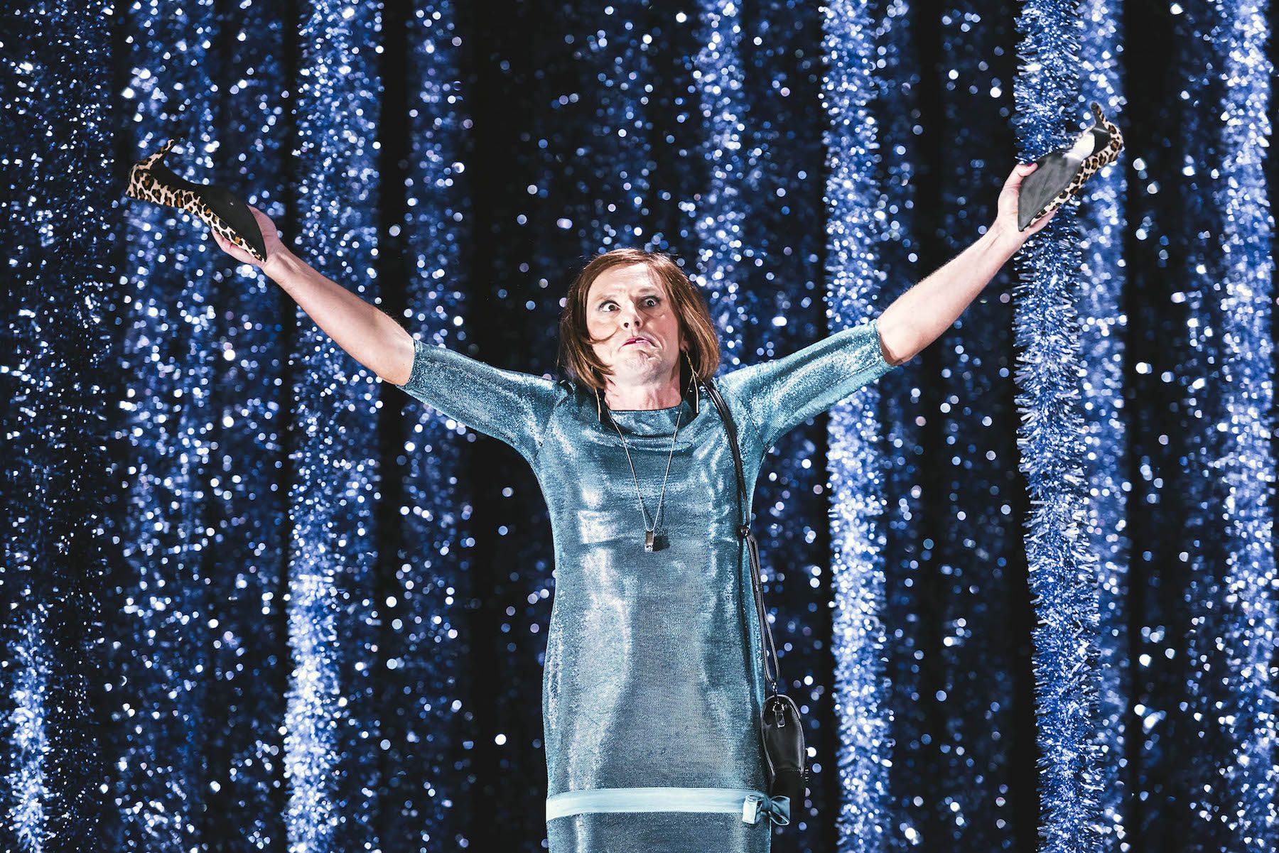 Silbrig-blau glitzernde Weihnachts-Lametta-Girlanden überraschen das Publikum schon in den ersten Sekunden der Produktion „Der Herzerlfresser“ von Ferdinand Schmalz. Von der Decke bis zum Boden bilden sie einen Zauberwald oder einen Raum, in dem alle Wünsche erfüllt werden können. In der Regie von Alexander Wiegold verändert sich in Sekundenschnelle auf der Bühne des Akademietheaters braches Sumpfland zu einer konsumorientierten Lebensillusionsmaschine.