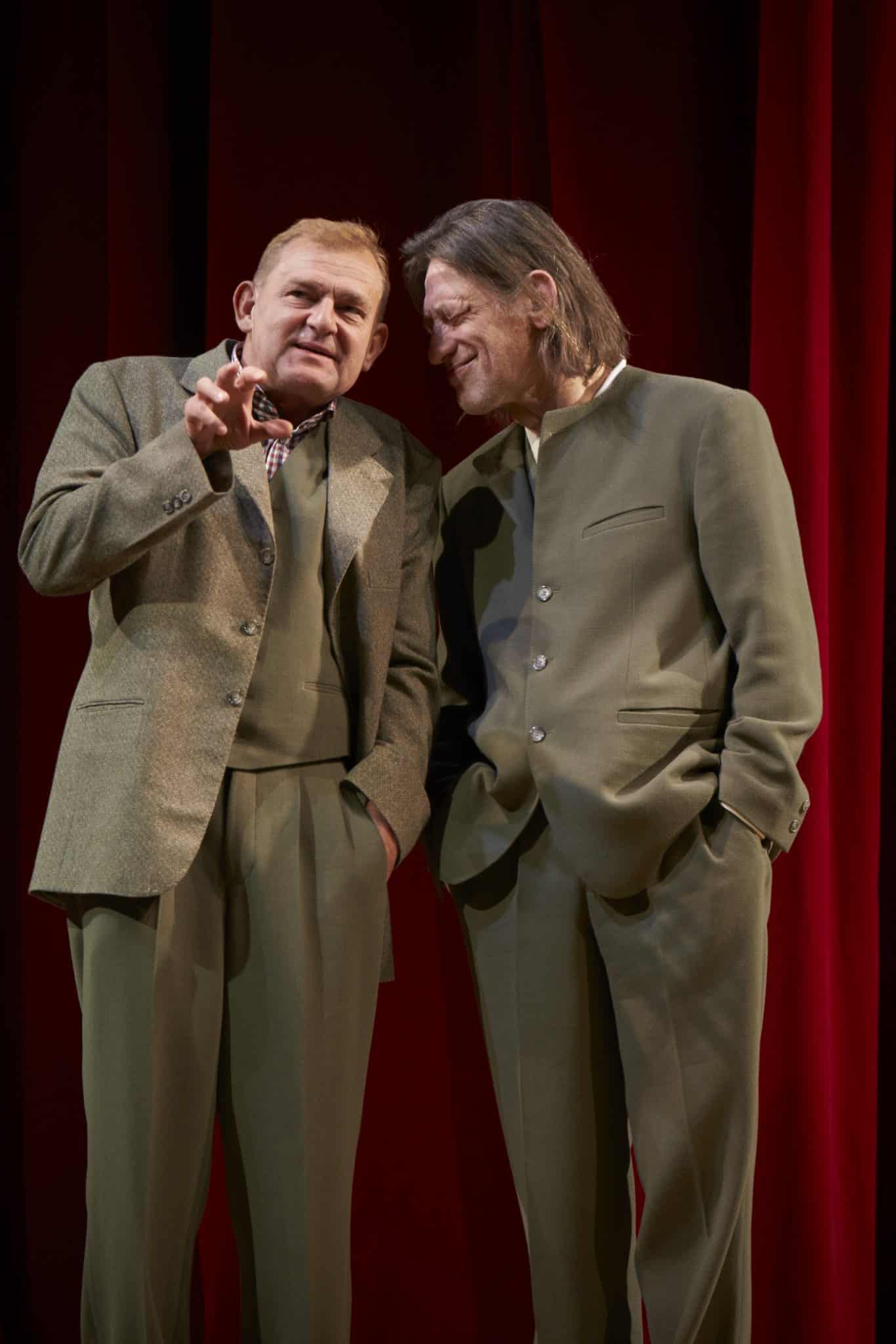 Einzelne Requisiten, wie eine überdimensionale Skizze, die den Grundriss des Gebäudes wiedergibt, oder ein Kranz, der stellvertretend für die Vorbereitungen zur Beerdigung abgelegt wird, markieren zugleich Orte aber auch Befindlichkeiten. Der Zauber des Abends liegt aber im beständigen Rollenwechsel ein- und derselben Romanfigur. Beinahe zerbrechlich agiert dabei Christian Nickel, ganz im Gegensatz zu Wolfgang Michael, der einen Murau aus echtem Schrot und Korn verkörpert. Martin Zauner zeigt die wütende Seite von Murau und Udo Samel erweist sich als beinahe verschmitzter und humoriger Typ, der zugleich auch ein optisches „Thomas Bernhard Alter Ego“ der Sonderklasse abgibt.