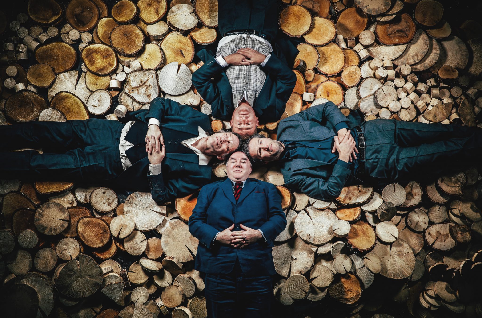 Den langen Erzählfluss, den Bernhard seiner Hauptfigur einschreibt, teilt Reese auf vier Personen auf. Sie alle, Wolfgang Michael, Christian Nickel, Udo Samel und Martin Zauner schlüpfen abwechselnd in die Rolle des Schlosserben. Aber – mit wunderbarem komödiantischem Ausdruck – auch in jene der beiden Schwestern Caecilia und Amalia, des Erzbischofs, Onkels oder Gärtners. Mit diesem klugen Schachzug wird nicht nur der Text in kleinere, kurzweiligere Tranchen unterteilt. Reese schafft es auch, dass die Zusehenden keine fixe Vorstellung von Murau bekommen. Alle, die den Roman gelesen haben, haben ein eigenes Bild dieses Familienverweigerers im Kopf, der am Schluss durch einen Coup all das von sich weist, was ihm aufgrund der Erbfolge zwar zugeteilt wurde, was er aber ein Leben lang schon verschmäht hatte. Das ist gut so, denn damit tappt man nicht in jene Falle, die eine Dramatisierung oft für einen Roman darstellt. Auch das Bühnenbild (Hansjörg Hartung) hält geschickt inne. Agieren die Schauspieler vor der Pause auf dem Proszenium vor dem Vorhang, wird auch danach kein Blick auf das Schloss präsentiert. Nur zwei statische, hoch aufgetürmte Holzscheit-Stapel sind zu sehen, die einen kleinen, schmalen Durchlass freilassen; wohin, das ist nicht zu erkennen. Zum Entkommen aus dem reaktionären Leben seiner Familie bleibt Murau eben nur ein ganz schmaler Spalt.