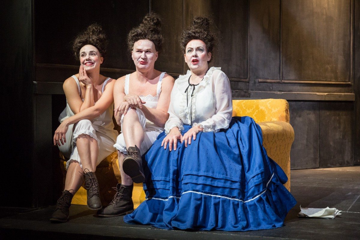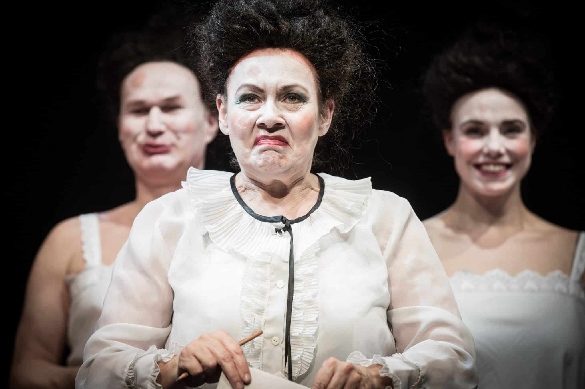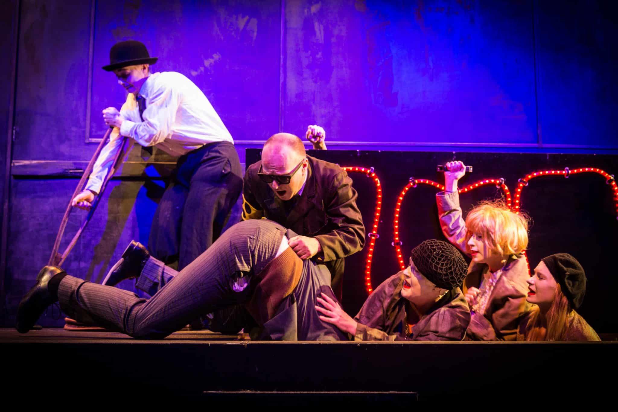 Die Regie von Mezgolich rückt das Tragik-Komische der einzelnen Charaktere in den Vordergrund. Die übertriebenen Kostüme und Masken erinnern, wie auch die Spielweise mit ausladenden Gesten und lauten Deklamationen, teilweise an Commedia dell´arte-Figuren. Georg Schubert und Elisabeth Veit agieren gleich in mehreren Rollen, wobei Schubert als proletiger Ex-Polizist und Veit als verkrüppelter Gauner besonders beeindrucken.