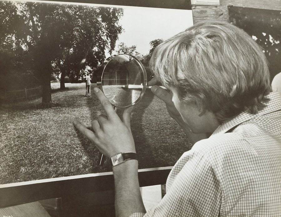 Antonionis Hauptfigur, ein Modefotograf, entdeckt bei einem „Blow Up“ eines Fotos, das er in einem Park machte, einen Mann mit einer Pistole und findet danach tatsächlich auch eine Leiche. Doch gerade die fotografischen Vergrößerungen, in welcher die abgebildete Realität zu undechiffrierbaren visuellen Phänomenen mutiert, werfen permanent die Frage nach Fiktion und Realität auf. Anontionis Film, der auch in der Schlussszene mit dem Phänomen der Abwesenheit von realen Gegenständen spielt, wurde damit zu einem der frühen Kunstwerke, an denen sich die Foto- und Medientheorie bis heute abarbeitet. Die stark vergrößerten Fotos machten erstmals deutlich, dass diese nicht als wahre Repräsentationen der Realität zur Verfügung stehen. Eine vorausblickende Idee, die weit ab von der Kunst vor allem dort Beachtung finden sollte, wo zu politischen Propagandazwecken vorgegeben wird, mit Fotografien oder Filmen eine vermeintliche Wahrheit abzubilden.