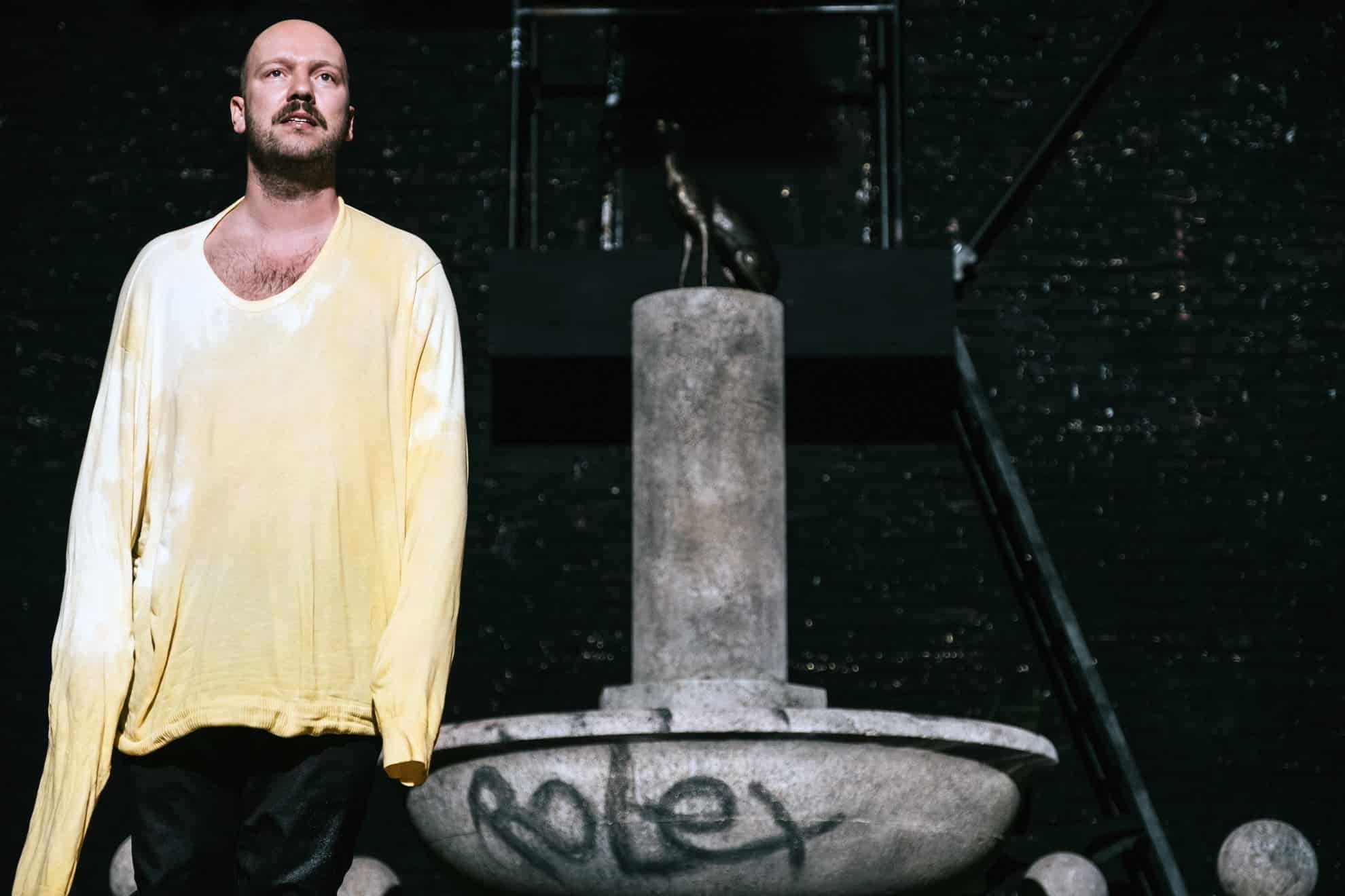 Denn rings um das Brunnenbecken gibt es nur wenig Platz für die Menschen. So waten Simon Bauer, Vera von Gunten, Steffen Link und Martina Spitzer mit Gummistiefeln unter ihren Hosen und imprägnierten Kleidungsstücken durch das Nass, um miteinander oder auch aneinander vorbei zu kommunizieren. Simon Bauer verkörpert Elija, der sich in seinem Körper völlig deplatziert fühlt. Von der Außenwelt gedrängt, lässt er eine Geschlechtsumwandlung vornehmen, um danach zu bemerken, dass dies eine falsche Entscheidung war. Eigentlich möchte er weder „das Dunkle noch das Helle“, sondern irgendetwas Neues dazwischen verkörpern. Seine Cousine (Martina Spitzer) steht ihm mit Rat und Tat zur Seite und hilft ihm, so gut sie kann, meist mit Tipps, welche Experten denn für die nächsten Schritte der Geschlechtsumwandlung zu konsultieren seien. Der Autor des Dramas, Mehdi Moradpour, teilt den Text in verschiedene Ebenen. Zum einen arbeitet er mit Monologen, in welchen die Personen meist sich selbst charakterisieren oder ihre Befindlichkeiten erklären. In den Dialogen zeigt er die Reaktion von Menschen wie die Eltern von Elijas, die sich wünschten, er hätte zwei Köpfe oder Klumpfüße, wenn er nur nicht so wäre, wie er tatsächlich ist. Zum Dritten schiebt der Autor immer wieder zum Teil auch sehr poetische Textstellen ein, welche die Handlung jedoch jedes Mal beinahe zum Erliegen bringen. In der Regie von Zino Wey wird ein großer Respekt vor dem nicht leicht verständlichen Text spürbar. Das führt dazu, dass dieser sich, mit vielen, unterschiedlichen, sprachlichen Ebenen ausgestattet, bühnenschwierig erweist und dadurch keine spannende Sogwirkung entfalten kann.