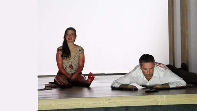 Dies hat vor allem auch mit den starken Bildern zu tun, die an diesem Abend aus den Konstellationen der Beteiligten auf der Bühne und ihrer Spielintensität entstehen. Nicht zuletzt ist dies auch den Kostümen und der minimalen aber effektvollen Ausstattung geschuldet. Nacktheit, viel Theaterblut und eine Waffe reichen, um die Emotionen im Publikum anzustacheln. Denis Petković als Faust mutiert vom Pullover tragenden, bebrillten Nerd zum tief bewegten, sich selbst seine Schuld eingestehenden jungen Mann. Sein verzweifelter Versuch, Gretchen aus ihrem Kerker zu holen, in dem sie blutbesudelt und geistig umnachtet wie ein lebendes Monument am Boden verankert sitzt, misslingt kläglich. Zu oft rutscht er an ihren blutnassen Extremitäten ab – ein einprägsames, metaphorisches Bild der Schuld, die auf der jungen Frau mit dem Tod ihrer Mutter und der Tötung ihres Sohnes lastet. Faust richtet in höchster Verzweiflung und in letzter Konsequenz die Waffe, die ihm Mephisto anbietet, gegen sich selbst und nicht gegen den Teufel. Mit seinem Freitod schiebt er die Verantwortung seines Tuns nicht an ein auferlegtes Schicksal, nicht an böse Mächte, sondern übernimmt sie kompromisslos.