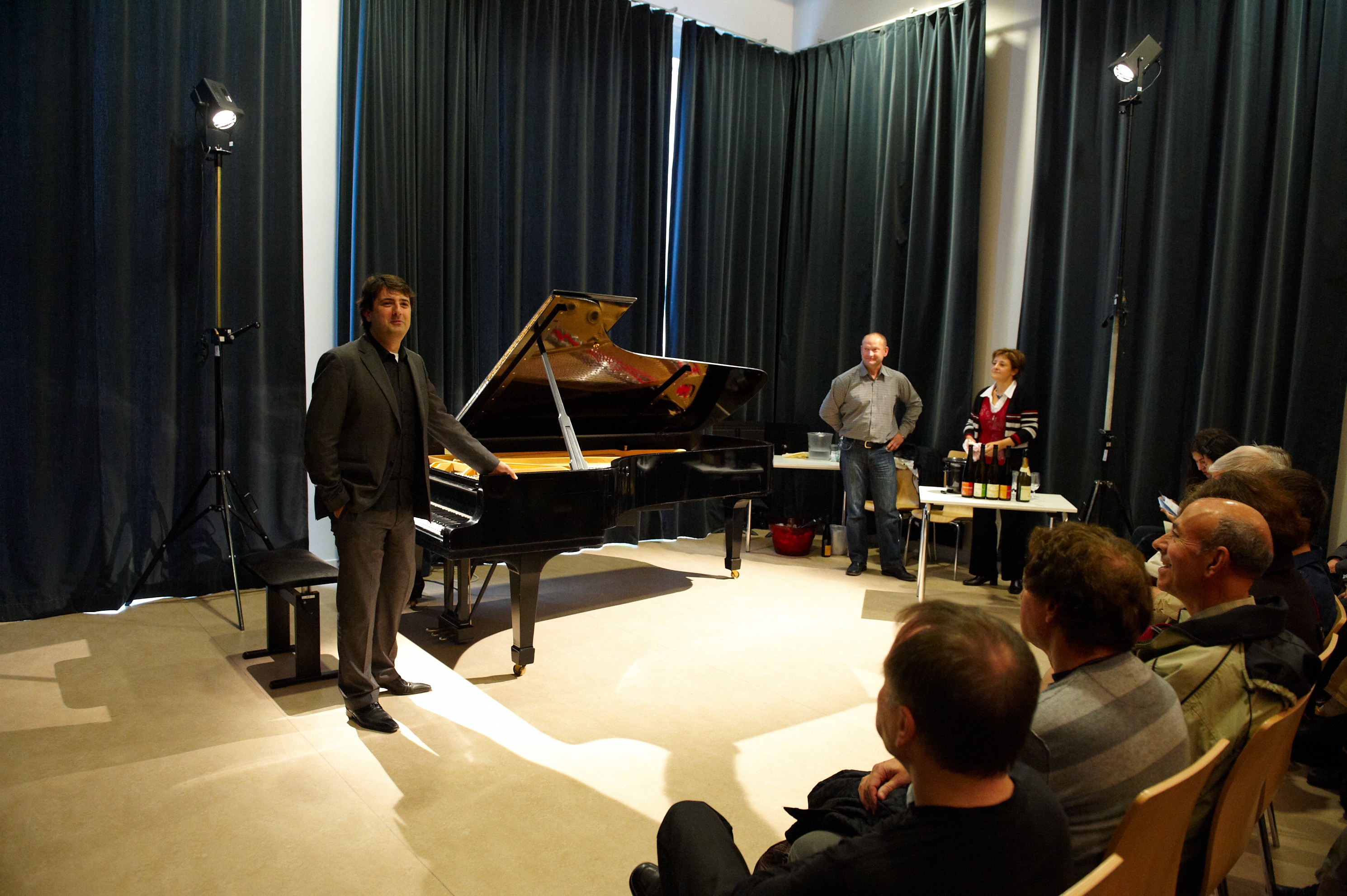 Bruno Mantovani, l’une des découvertes françaises parmi les jeunes compositeurs, s’est attaqué au piano aux interprétations de goût des différents vins alsaciens. Les Greiner, une famille de viticulteurs ayant apporté 4 vins et un crémant pour une dégustation, étaient visiblement émus, quand Mantovani a transformé leurs vins en sons. L’année dernière déjà on a pu assister à une expérience semblable, avec l’œuvre « Lagrein » de Johannes Maria Staud, une transcription en musique du feu d’artifice gustatif d’un vin rouge du Tyrol du Sud.