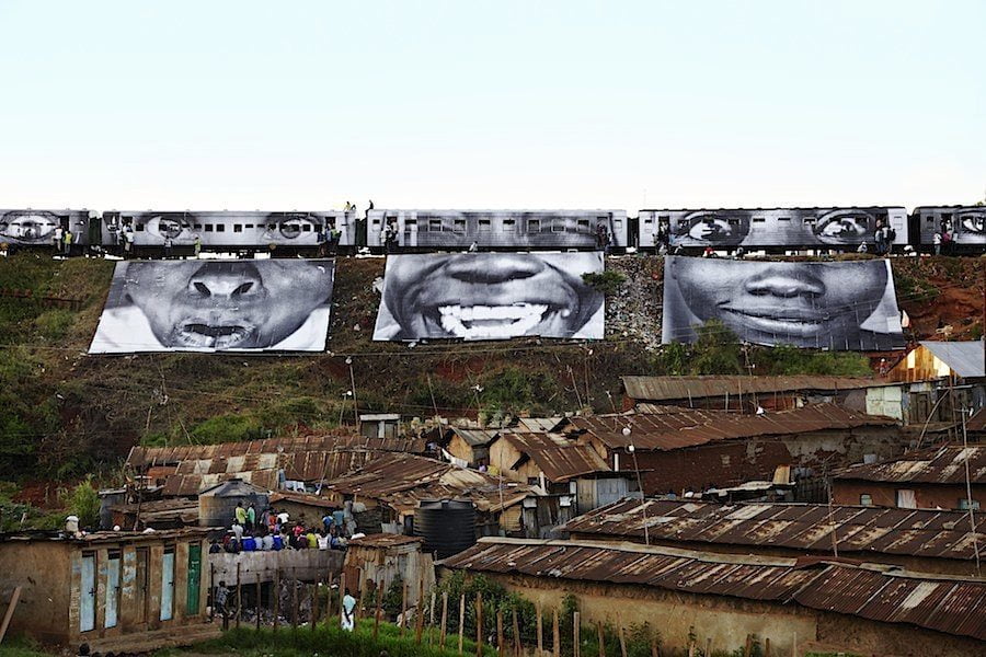 - JR, 28 Millimètres: Women Are Heroes, Action in Kib era Slum, Train Passage 3, Kenya, 2009 © JR, 2014