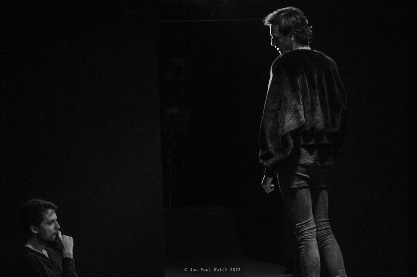 Isabella Wolf, die auch für die Gesamtleitung des Abends verantwortlich ist, setzt in ihrer cleveren Regie auf ein gewisses Maß an Abstraktion, das sich auch in den eingespielten Videosequenzen, in denen Neichl und Oppermann zum Teil nur ausschnittweise zu sehen sind, spiegelt. Bei ihr erhält der Catwalk an seinen beiden Seiten je einen zusätzlichen, nur durch fluroiszierende Kabel markierten Raum, in welchem sich die jeweils nicht Spielenden dennoch permanent für alle sichtbar aufhalten und das Geschehen teilweise auch auditiv unterstützen.