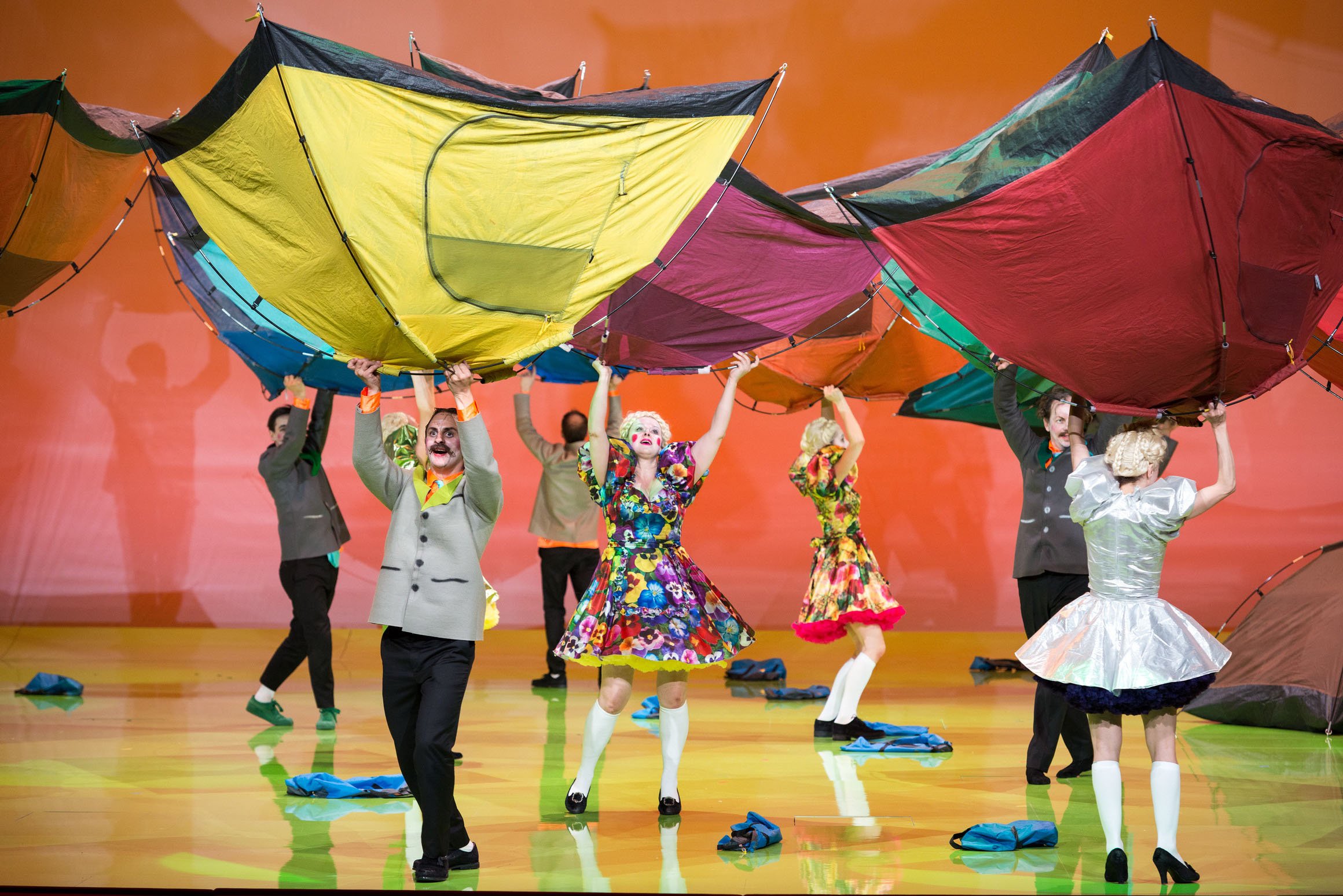 „Zelt“ von Herbert Fritsch im Burgtheater ist eine schrille Show mit viel Klamauk und Clownerie. Gleichzeitig dient sie als Metapher für ein Theater, in dem gestaunt werden darf, das nachdenklich macht, aufregt und unterhaltsam ist.