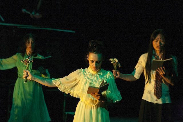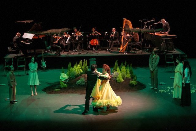 La donna in un abito da sera giallo e fluente, il suo partner in frac, danzano sulla musica di Cho Young Wuk, interpretata dall’ensemble Phace. Ai lati del palcoscenico, il resto della compagnia di attori, tre uomini, una donna e Liddell, si fermano a guardare la danza in silenzio. In questo momento, carico di grande poesia, tutto ciò che è stato detto in precedenza viene dimenticato. Il lutto e il dolore, la rabbia e l’impotenza non hanno più alcun ruolo. Solo la musica del valzer e la coppia completamente immersa in essa, proveniente da una cultura lontana in cui il valzer non ha alcuna tradizione, incantano il pubblico.