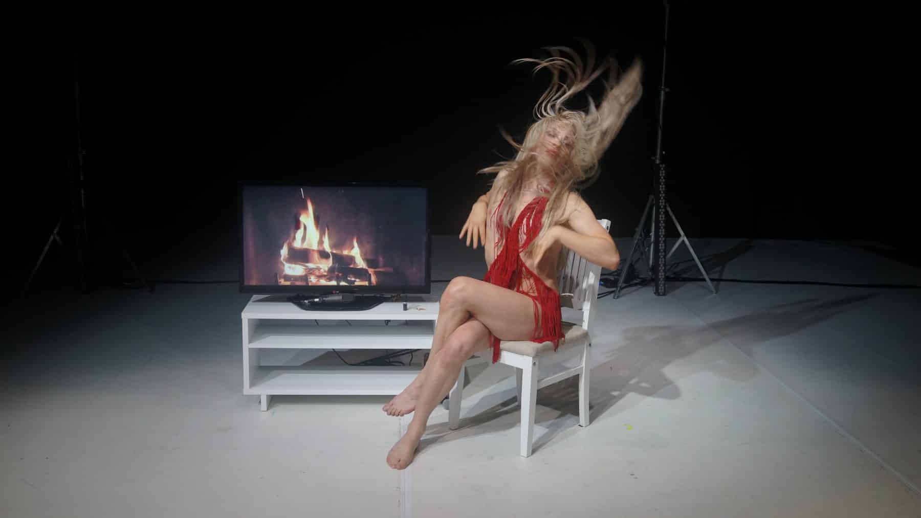 Dimchev schlüpft dafür in die Rolle einer Showmoderatorin, die mit Heilkräften ausgestattet ist. Eine Perücke aus langen blonden Haaren, rot geschminkte Lippen und ein laszives Gehabe bestimmen seine weibliche Erscheinung am Beginn. Dramaturgisch wunderbar durchdacht, verliert er im Laufe des Abends dieses Glamour-Aussehen, um zum Schluss als verweintes Elendshäuflein, bar jeder Haarpracht und weiblichen Attitüde vor dem Publikum zu stehen.