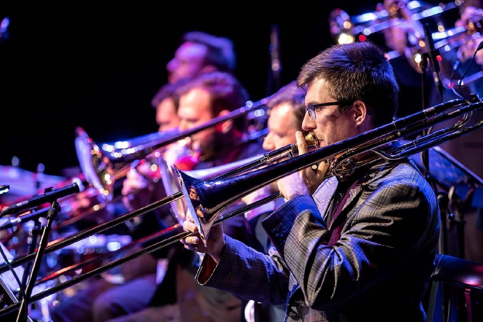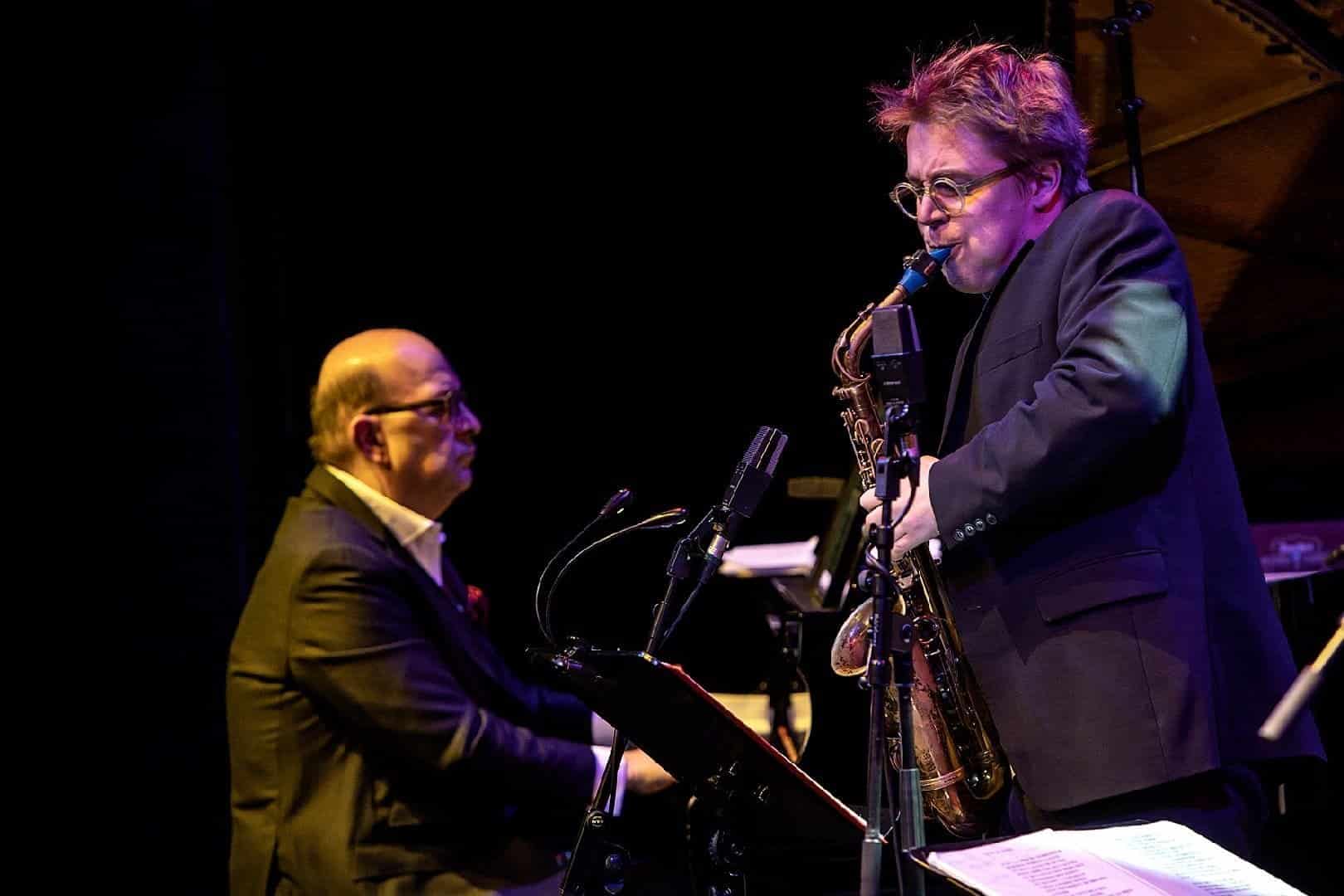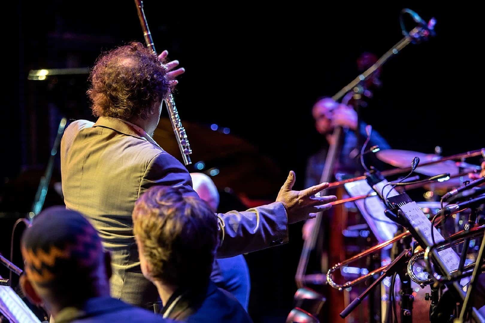 Brel zu imitieren wäre ein von langer Hand geplanter Selbstmord. Brel neu zu interpretieren funktioniert auch nur dann, wenn den Ohren etwas geboten wird, das vertraut und fremd zugleich erscheint. So könnte man am ehesten das Ergebnis des Abends „Brel. Jazz Bigband Graz feat. David Linx mit den weltberühmten Songs von Jacques Brel“ beschreiben. Vieles, was da zu hören war, wurde mit einer neuen, zum Teil gewagten Harmonik unterfüttert. Vieles hat neue, rhythmische Einlagen erhalten, die teils herausfordernd zu spielen sind. Zugleich aber wurde einer der Grundregeln des Jazz beibehalten: Mit einer Reihe von Soli durften sich die einzelnen Ensemble-Mitglieder vorstellen und dabei zeigen, welche Qualität jeder einzelne Musiker vorzuweisen hat. Dabei war es schön zu sehen, welche Freude Linx selbst bei den Auftritten seiner Kollegen hatte. Immer in Bewegung, vom Rhythmus erfasst, dabei jedoch stets den Solisten den Vortritt lassend, stand er während der einzelnen Einschübe an der Seite, um sekundengenau getimt, seinen Einsatz parat zu haben. Frank Vaganée leitete abwechselnd mit Querflöten- und Saxophoneinsatz die Band von der ersten Reihe aus.