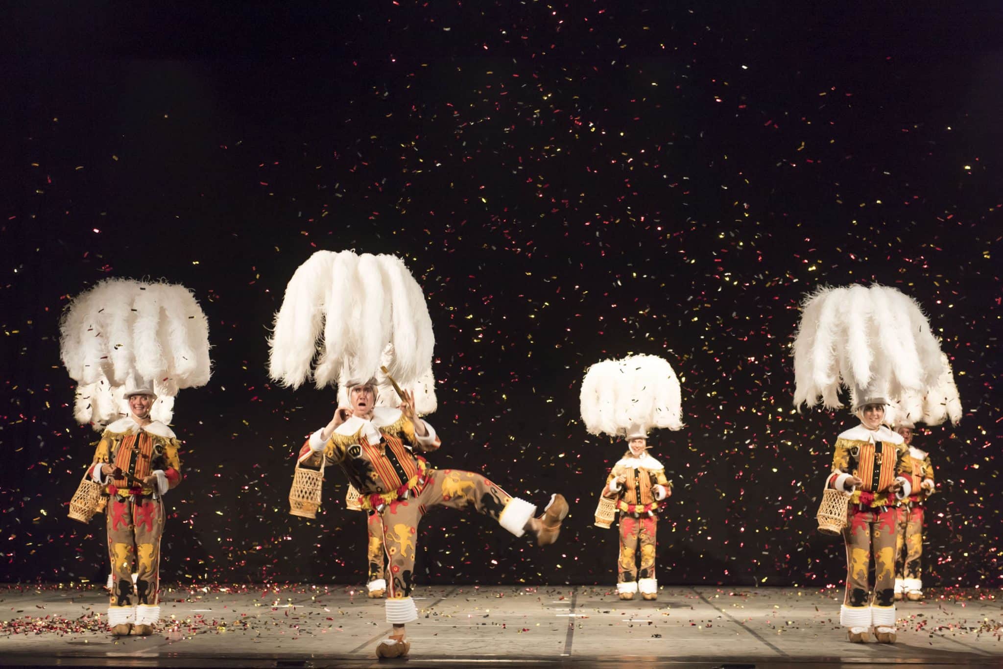 Dem zum Teil morbiden Charakter der Inszenierung steht das pralle Leben, das ebenso zelebriert wird, gegenüber. Fantastische Fastnachtsgestalten mit buntem Federkopfschmuck, ein Tambourstäbe schwingendes, zackiges Ballett in blauen Uniformen, eine ausgelassene Geburtstagsfeier mit einem Regen an Glitzerkonfetti und jeder Menge Musik lassen Feierlaune noch und nöcher aufkommen. Die physische Leistung des außerordentlichen Ensembles ist bestechend. Was hier an Körpereinsatz zu absolvieren ist, treibt sogar dem Publikum den Schweiß auf die Stirn. Dabei sind es drei Szenen, welchen eine Schlüsselposition zugeschrieben werden kann. In zwei von ihnen zeigen die Performenden – ganz so wie in einem Fitness-Studio – ein anstrengendes Workout, bei dem sie in militärischer Manier jeweils eine ganze Anzahl von Verboten repetieren. Dies erreicht seinen Höhepunkt, als die Wiederholungen mit höchstem Krafteinsatz kein Ende zu nehmen scheinen, das Publikum sichtbar ungeduldig und unruhig wird und erst ein Zwischenapplaus dieser Menschenschinderei ein Ende setzt. Genial dabei, wie Fabre die Empfindung von Verboten und Repressionen körperlich auf sein Publikum überträgt, auch wenn er ihm damit wenig schöne Minuten bereitet.
