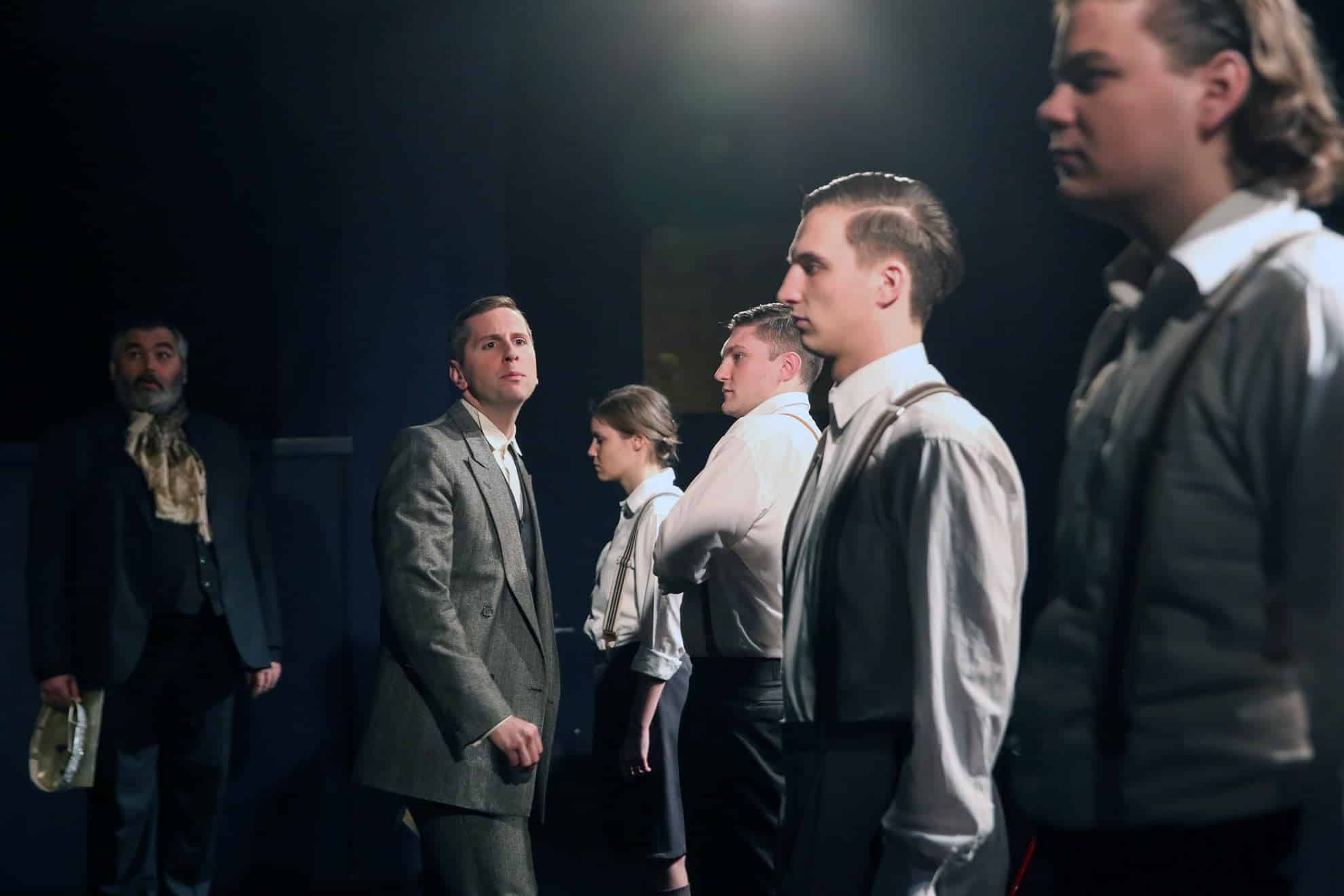 Auch Gunter Matzka, Sebastian von Malfèr sowie Max Kolodej sind in mehreren Rollen präsent. Ersterer als mehrfacher Obrigkeitsvertreter wie der Pfarrer oder der Richter, zweiter neben dem Schüler T auch als alle Mütter, wobei er bei einem Auftritt die Lacher auf seiner Seite hat. Kolodej verkörpert neben dem Schüler N auch mehrere Väter und den Kriminalreporter. Dieser trägt schwarze, kleine Flügel auf seinem Trenchcoat. Ein kleiner Hinweis, dass die Regisseurin ihn auch als Geist von N selbst sieht, der in diesem Stück ermordet wird und sich so auf die Suche nach seinem Mörder macht. Dieser Turnaround von Horvaths Figur ist der einzige Rebus der Produktion. Sonst bleiben die Figuren und Charaktere, trotz Kürzungen, bestens verständlich und ihre Aktionen nachvollziehbar.