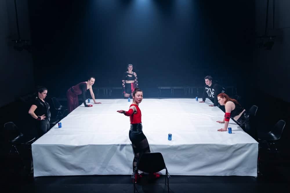 Martin Hammer agiert als einpeitschender Wrestling-Host, der sich alsbald aufgrund der geballten Womanpower selbst auf höchst gefährlichem Terrain wiederfindet. Zu tun hat er es mit Pilar Borower, Nina Fog, Hannah Joe Huberty, Isabella Knöll und Christoph Radakovits. Sie performen in verschiedenen Rollen – einmal als Kardashians, dann wieder als feministischer Chor, der außerhalb des Ringes Kim, dargestellt von Edwarda Gurrolla, mit peinlichen Fragen zu Leibe zu rücken versucht. Denn eines ist klar, so wie es einst war, dass dem Matriarchat das Patriarchat folgte, so spielt es sich in unserer Zeit nicht ab.