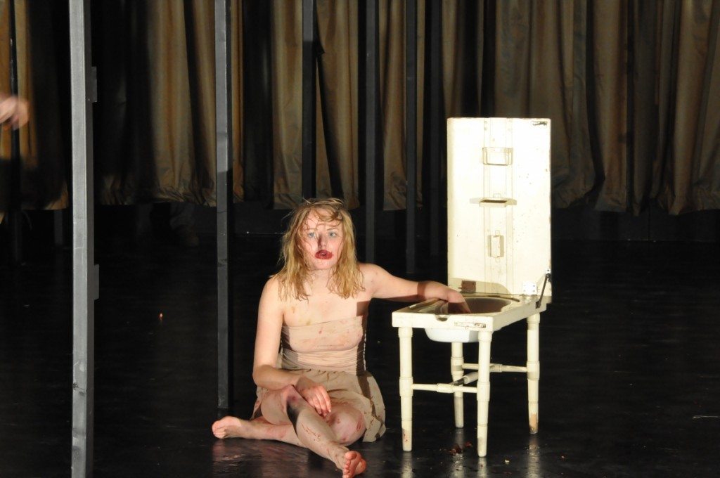 Lulus blutbeschmiertes Wäschestück (Kostüme Agnes Burghardt) fungiert darüber hinaus auch als Leinwand ihres Künstlergatten. Lennart Lemster darf in dieser Rolle zeigen, wie leicht Menschen ihre Verdrängungsmechanismen aktivieren können. Exaltiert, neurotisch, zögerlich und schwärmerisch zugleich hält er jedoch nur so lange an seiner Frau fest, bis er mit ihrer Vergangenheit konfrontiert wird. Bernhard Eder schuf minimalistische Soundgebilde, welche die jeweiligen Seelenzustände verstärkend illustrieren. Ein zusammenklappbarer Leibstuhl fungiert bühnenmittig gleichzeitig als einzige Sitzgelegenheit und als Folterinstrument auf dem Lulu ihr grausiges Ende findet. Sarah Sassens Bühnenbild und –ausstattung sind genauso kalt wie die Charaktere, die darin leben und sterben. Dass sich viel direkt auf dem Boden abspielt, ist für das Publikum auf den hinteren Sitzreihen leider ein richtiges Handicap. Ein nur wenige Zentimeter hohes Podest hätte hier gut Abhilfe schaffen können.