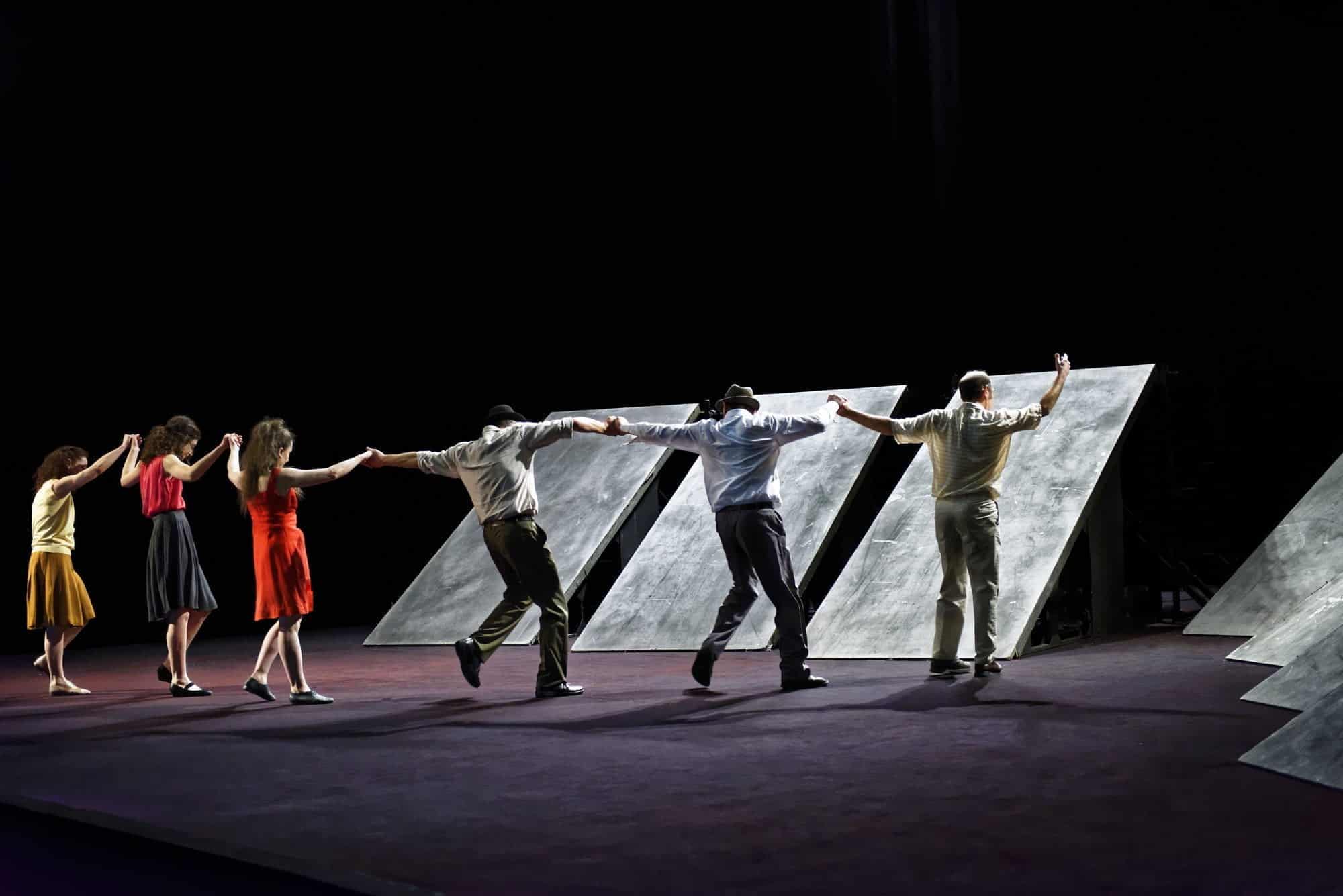 Und dennoch sind es diese Szenen, die verdeutlichen, wie sehr das Auf und Ab im Leben eines Menschen sich über die Jahrhunderte, ja Jahrtausende, mit Millionen anderer vergleichen lässt. Die Leichtigkeit und Fröhlichkeit, die dem Stück zu Beginn innewohnte, kommt ihm, je länger es dauert, abhanden. Und in der letzten Szene, die choreografisch an den Beginn anknüpft, ist es dann soweit: Dem Idyll der Tanzenden kann man nicht mehr trauen. In all dem Hin und Her zwischen Anziehung und sexuellen Übergriffen, zwischen Ausgelassenheit in der Gruppe und einer Einsamkeit, bei der jeder und jede für sich versucht, den Scheitelpunkt einer Schrägen zu erklimmen, wird deutlich, dass es letztlich wenige Motivationen sind, die das Leben würzen oder zur Hölle werden lassen.