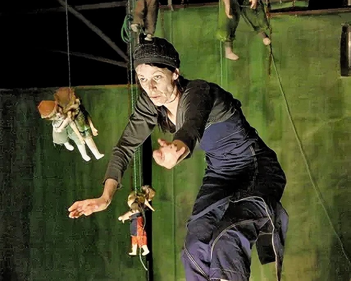 „Mund halten“, so die deutsche Übersetzung, befasst sich mit dem schwierigen Thema Kinderarbeit. Nathalie Baldo, die eine Stunde lang als Tänzerin, Schauspielerin und Marionettenführerin auftritt, zeigt in einem geschlossenen Zelt, in das die Besucher mit zuvor angelegten, blauen Arbeitsschürzen eintraten, ein Kaleidoskop verschiedener Arbeits- und Traummomente. Der Raum, voll mit alten Nähmaschinen, die noch mit dem Fußpedal zu bedienen sind, lässt nur durch zwei kleine, vergitterte Fensterchen das Draußen erkennen. Über Baldos Kopf schweben viele kleine Puppen – welche den direkten Bezug zur Kinderarbeit herstellen sollen. Mit einer von ihnen arbeitet die Tänzerin schließlich sehr lyrische und berührende Momente heraus – wenn das Püppchen sich hinter das Antriebsrad der Nähmaschine stellt und so mit Nathalie Baldo wie ein Kapitän auf hoher See durch den Raum gefahren wird.