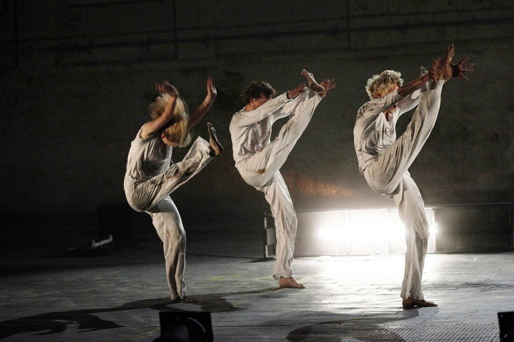 Als Bühnenbild dienten – neben dem Industriedenkmal selbst, das einen bezwingenden, spröden Charme verbreitet – 5 schmale, schwarze, hoch aufragende Quader, an deren Rückseite leuchtende Neonröhren installiert waren. Bald wurde klar, dass diese nicht nur ein ästhetisches Moment darstellten, sondern vielmehr symbolisch für eine Entwicklung standen, die Nietzsche in seiner Kritik an der Moral anprangerte. Nicht als moralische Fehlentwicklungen in der Menschheitsgeschichte waren sie in diesem Kontext zu lesen, sondern bildeten vielmehr den Gegenpol zu einem Menschenbild, das in der Inszenierung überdeutlich von seiner animalischen Abstammung her geprägt und determiniert ist. Immer und immer wieder verwandelten sich die TänzerInnen Elke Pichler, Julia Mach und Filip Szatarski zu am Boden kriechenden Mehrzellern, gesteuert einzig von naturhaftbedingten Prozessen. Immer und immer wieder imitierten sie tierische Bewegungsmuster, die nicht vergessen ließen, welche Abstammung dem Menschengeschlecht zugrunde liegt. In Momenten allerdings, in welchen sich die Musik als herausragendes Element in das Geschehen einmischte, wurde alles Tierhafte abgeschüttelt und die menschlichen Sinneswahrnehmungen mit ihrer Reaktion auf Musik zelebriert. Dies gipfelte in der gesanglichen Interpretation der „Beschwörung“, eines von Puschkin verfassten Gedichtes, welches Nietzsche vertont hatte. Die darin ausgesprochene Klage und der Wunsch, die geliebte, verstorbene Frau bei sich behalten zu können, wurde so zart und berührend von den Bühnenagierenden interpretiert, dass es ein Leichtes war, Nietzsches Musikverbundenheit nachzuvollziehen und seiner absoluten Bewunderung dieser Kunstgattung zuzustimmen. Das Einbinden der Musiker in das tänzerische Geschehen selbst schien weniger von einem tiefsinnigen Grundgedanken gekennzeichnet gewesen zu sein als vielmehr mit einem ironischen Augenzwinkern behaftet. Zumindest nahm das Publikum dies so auf. Entkleidet bis auf ihre schwarzen Unterhosen, durften sie in allerlei Posen ihre Instrumente bedienen – ob als Kleiderständer missbraucht oder vom Klavierstockerl durch die TänzerInnen einfach abgehoben und in waagrechte, schwebende Position gebracht. Nichts konnte sie erschüttern, sie blieben völlig unbeeindruckt ihrem Musizieren treu ergeben, verbunden mit ihren Instrumenten, wie Mütter das mit ihren Babys durch ihre Nabelschnur sind. Der kontemplative Moment, im heutigen Fachjargon als „Flow“ betitelt, den MusikerInnen während des Spielens häufig erleben, wurde wohl auf diese Weise versucht zu veranschaulichen.