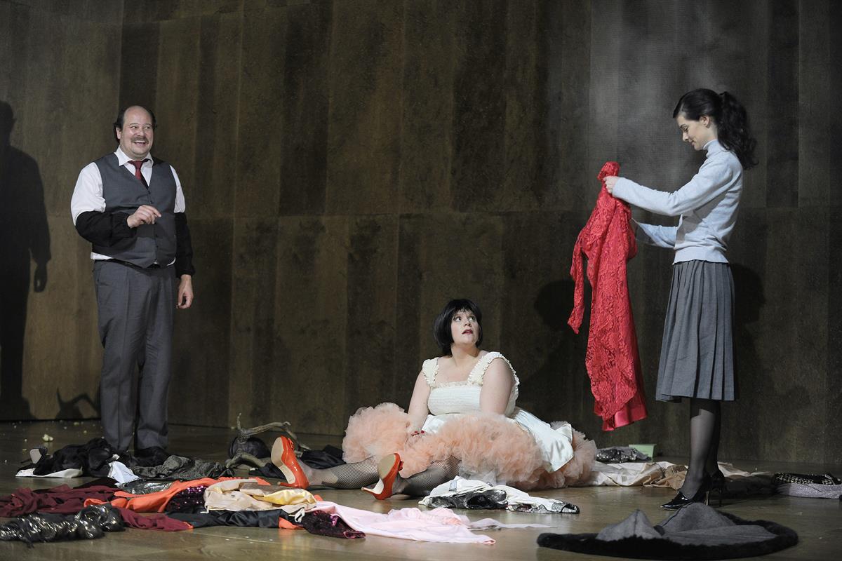 Dušan David Pařízek ist ein Multitalent. Nicht nur für die Bühne verantwortlich, einem kahlen, holzvertäfelten Guckkasten, der sich am Ende des Stückes in seine Bestandteile auflöst, sondern auch für die Regie, beschert er dem Publikum ein neues Theaterfeeling. Bis auf Nora sitzen alle Ensemblemitglieder nicht nur zu Beginn in den Zuschauerreihen, quer verteilt im Parkett und auf der neu errichteten Tribüne. Das Licht bleibt im Zuschauerraum an. Pařízek interpretiert ihn kurzerhand in eine Versammlungshalle um, in der die Belegschaft zusieht, wie sich die Kollegen in die Haare bekommen und Konsul Weygang forsch Nora dazu bestimmt, die Hauptrolle im Ibsen-Stück zu spielen. Es ist einer der packendsten Momente des Abends, wenn sich die Bühne des Volkstheaters durch Reinspergers Spiel in jene des Versammlungssaales und wieder zurück verwandelt. Die Leere, die in den vier Wänden von Torwalds Heim herrscht, Sinnbild für Noras Seelenzustand, wird nur mit Bekleidungsstücken und einem später hinzugebrachten Spanholzpostkasten konterkariert. „Es hat jemand an dem Schloss manipuliert“, dieser Satz von Torwald wird zur Lachnummer, hat zuvor doch sein Kontrahent Krogstad den Sperrholzpostkasten mit Füßen eingetreten.