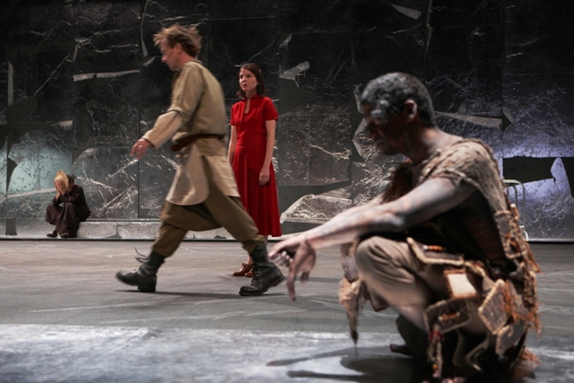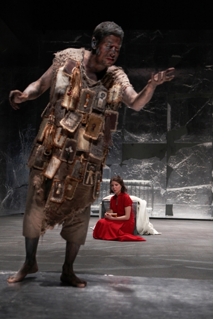 Die Inszenierung, ebenfalls von Jouanneau, reduziert auf das Nötigste, trägt aufgrund der Kostüme und auch akustischen Einspielungen die Gedanken des Publikums leichtfüßig in das archaische Griechenland. Das Möwengeschrei, das Unheil verkündende Worte unterstreicht, oder die geheimnisvollen Gesten Eumenides, sowie die unglaublich starke Interpretation Teiresias, der an der Kippe zwischen Verzweiflung, Wahnsinn und Weitblick agiert und immer wieder in Beschwörungstänze versinkt, lassen keine direkte, aktuelle Zeitbezogenheit zu. Umso beeindruckender ist die Wirkung des Stückes „Unter Ödipus Auge“. Es lässt dennoch erschaudern, wahrscheinlich vor unseren eigenen familiären Tragödien und unserer eigenen undurchdringbaren Lebensverstricktheit. Wer dies nach der Aufführung nicht gefühlt hat, darf sich getrost als Liebling der Götter bezeichnen.