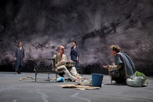 Archaische Gestalten – zwei Könige, ein weissagender Sonderling, zwei junge Frauen, zwei junge Männer und ein Zwitterwesen zwischen Mensch und Schwalbe – Figuren, die uns eigentlich nur vom Lesen her vertraut sind, vereinigen sich auf der Bühne des TNS in Straßburg und spielen das Spiel rund um den tragischen Helden Ödipus.