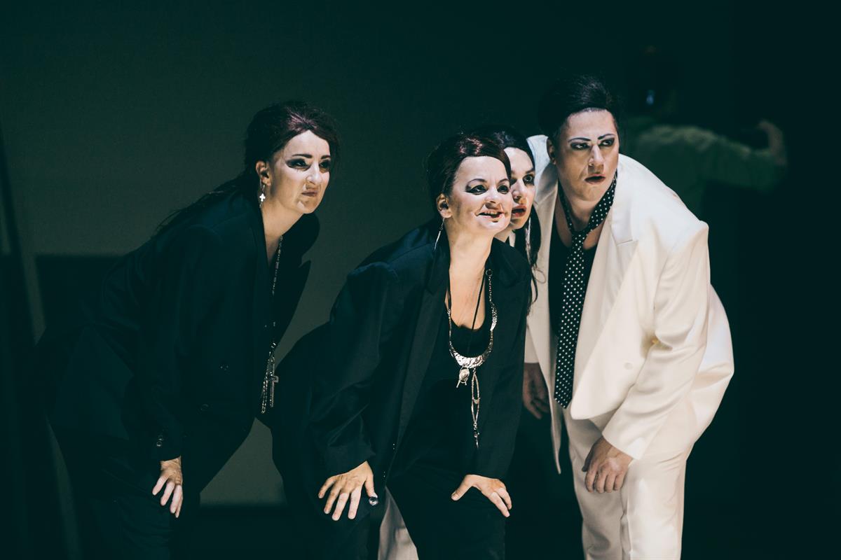 Die Textaufteilung auf das gesamte Ensemble lässt dieses einerseits wie einen antiken Chor auftreten. Andererseits erhalten alle Monologe, in welchen die unterschiedlichen Standpunkte zu diesem Geschehen ein Gesicht bekommen. Thomas Frank, Katharina Klar, Sebastian Klein, Steffi Krautz, Kaspar Locher, Claudia Sabitzer und Birgit Stöger präsentieren die Mitwissenden von hoch emotional bis verzagt, von abweisend bis rechtfertigend – immer jedoch intensiv und hoch präsent.