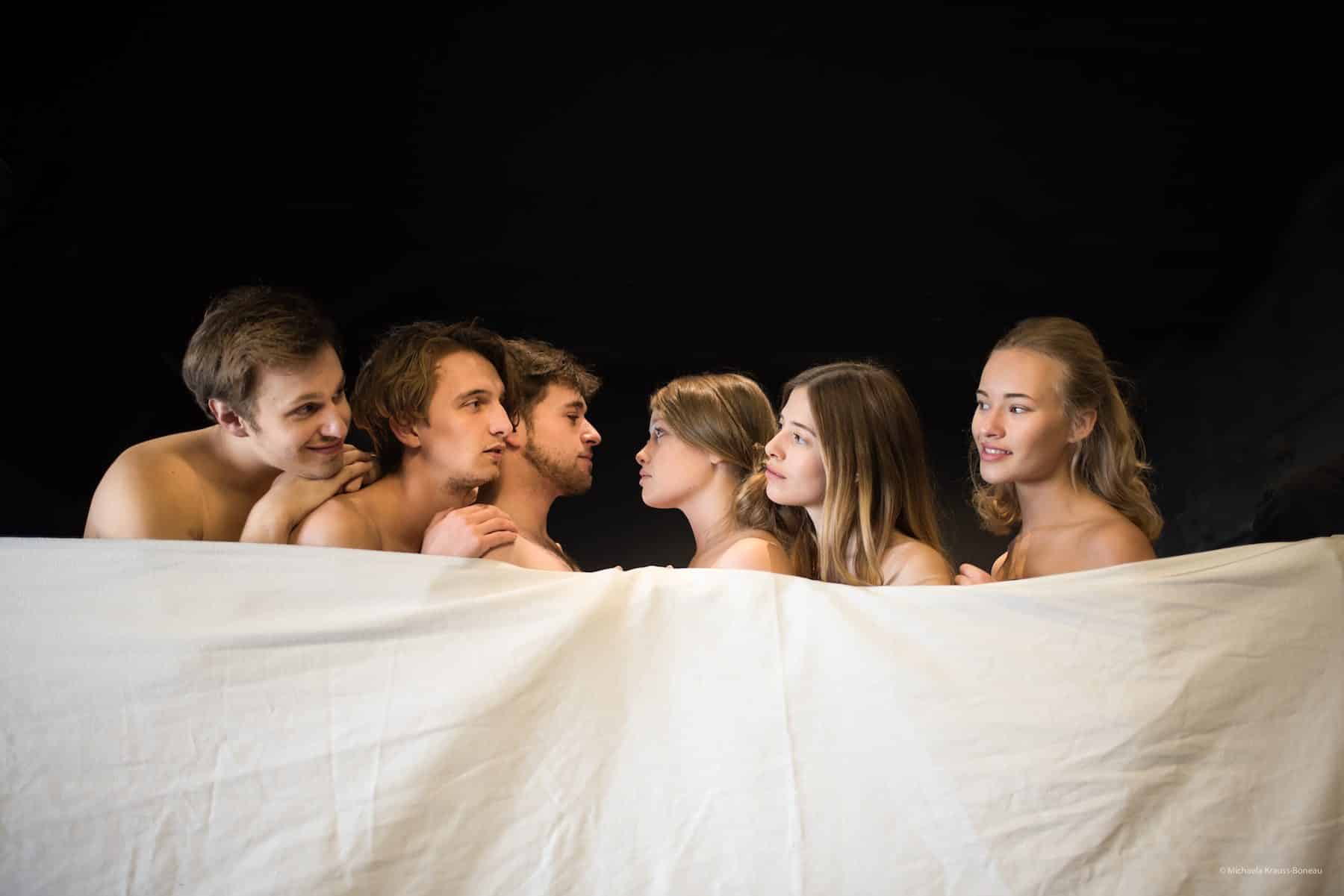 Wie in der Volkstheater-Inszenierung desselben Stückes von einem Jahr verteilen sich auch hier die Rollen auf drei Julias und drei Romeos plus je einer Puppe der Liebenden. Der große Unterschied jedoch ist die Interpretation der mit viel Humor beleuchteten Charaktere, die vor den tragischen, letalen Ereignissen vor der Pause die Lachmuskeln des Publikums ordentlich strapazieren.