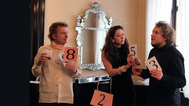 Franz Grillparzer, Moritz von Schwind, Johann Mayrhofer, Joseph von Spaun, Franz von Schober, Anna Fröhlich, Justine von Bruchmann, Johann Michael Vogel, Johann Senn oder Leopold Kupelwieser – alle waren sie im kleinen Salon zusammengekommen, um miteinander zu lachen, zu politisieren, Schuberts neueste Kompositionen zu hören und sich Gesellschaftsspielen hinzugeben. Die Idee, die Doppelbesetzungen durch kleine Nummerntäfelchen erkenntlich zu machen, deren Personenzuordnung man wiederum auf einer Liste fand, die an die Wand gepinnt worden war, kann als famos bezeichnet werden. Was diesen Abend neben der schon besagten lockeren und heiteren Grundstimmung auszeichnete war der Text des Autors Thomas Arzt, der sich mit der Regie aufs Allerbeste verschränkte. Fiktion und Wirklichkeit, Leben und Theater, das Gestern und das Heute – all das verschwamm ineinander und bezauberte deswegen so ungemein. Das Spiel im Spiel, die Kunst, die bei Schubert nichts anderes als pures Leben war – all das bildete ein so dichtes und zugleich schillerndes Gewebe, dass ein Sezieren des Gesehenen scheitern muss, weil es eines nicht kann: Jene sinnlichen Momente wiederzugeben, die an diesem Abend das theatralische Geschehen so herrlich ergänzten: Die kalte Winternacht, durch die man zuerst marschieren musste, die leicht schneebedeckte Strudelhofstiege, die in raschem Schritt erklommen wurde, die Mittfünfzigerin , welche auf dem Zebrastreifen vom Publikumsgrüppchen überrascht wurde und die ausrief: „Die sind aber nicht von da! Aus unserem Bezirk sind die nicht!“, der knarrende Parkettboden in Frau Schuberts Wohnung, der heiße Tee, der ausgeschenkt wurde, die voluminöse Tenorstimme von Clemens Kerschbaumer, der von Stephen Delaney am Klavier begleitet wurde.
