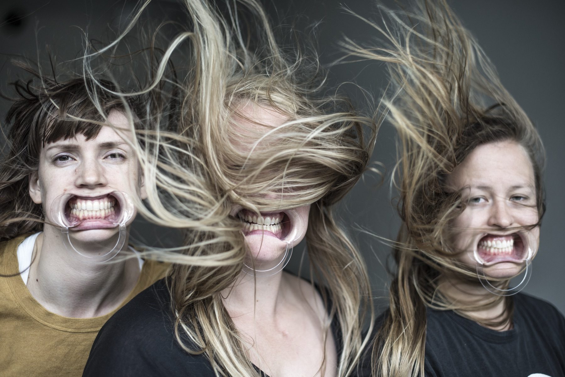 Zu sehen waren letztlich jedoch keine seelischen Introspektionen. Die drei jungen Frauen zeigten sich, ausstaffiert mit Mundwinkelspreizern, die normalerweise von Zahnärzten verwendet werden, als fratzenhafte Geistwesen. Styropor, das mit Ventilatoren in die Luft gewirbelt wurde, suggerierte mithilfe einer nur punktuellen Beleuchtung ein wildes Winterwetter, irgendwo im Norden Europas. Die erste Assoziation zum wilden Gebaren der Drei ist mit den Druden verknüpft. Jenen Frauen, die Menschen wohl gesonnen sein können, aber auch für Böses zuständig sind. Sie nehmen an der wilden Jagd teil, die meist Unheil verkündend am Himmel vorüberzieht. Die Tänzerinnen, die zugleich auch für die Choreografie verantwortlich sind, benahmen sich adäquat.