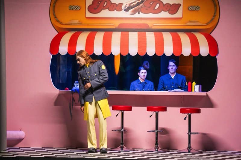 „Ich bin die Mutter, die töten muss“ oder „nach uns wird es kein Geschlecht mehr geben“ sind Sätze, die man schon kurz nach Beginn zu hören bekommt und die auf nichts Gutes verweisen. Die Erdenflüchtlinge sind unterdessen mit sich selbst beschäftigt. Unter der Regie von Emre Akal, der kunst- und geistvoll zugleich dem Text auf diese Art und Weise die höchstmögliche Aufmerksamkeit zuteilwerden lässt, agiert das Ensemble derweilen stumm auf der Drehbühne.