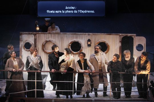 Es bedarf eines einfachen, bildlichen Vergleiches wie diesem, um „Les naufragés du fol espoir (aurores), das letzte Stück des Théâtre du Soleil unter der Leitung von Ariane Mnouchkine zusammenzufassen und auf den Punkt zu bringen. Der Titel „Schiffbruch mit verrückter Hoffnung – Morgenröte“ ist nicht nur in Anlehnung an ein kleines Bistro entstanden, in welchem sich Arbeitende und Intellektuelle in Paris im Jahre 1914 treffen. Vielmehr ist jedes einzelne Wort darin Programm für den Theaterabend. In komprimierter Form gibt er wieder, was zu Beginn des 20. Jahrhunderts die Welt bewegte. Der 1. Weltkrieg klopfte an die Haustüre Europas und dessen Bewohner öffneten ihm Tür und Tor, ohne zu wissen, welche Katastrophe über sie hereinbrechen würde. Das Schiff, auf dem Menschen hoffnungsvoll in eine neue Zukunft fuhren, erlitt Schiffbruch und jene, die überlebten, waren genötigt, auf neuem Terrain mit neuen Ideen und neuer Anstrengung ein neues Leben zu beginnen.