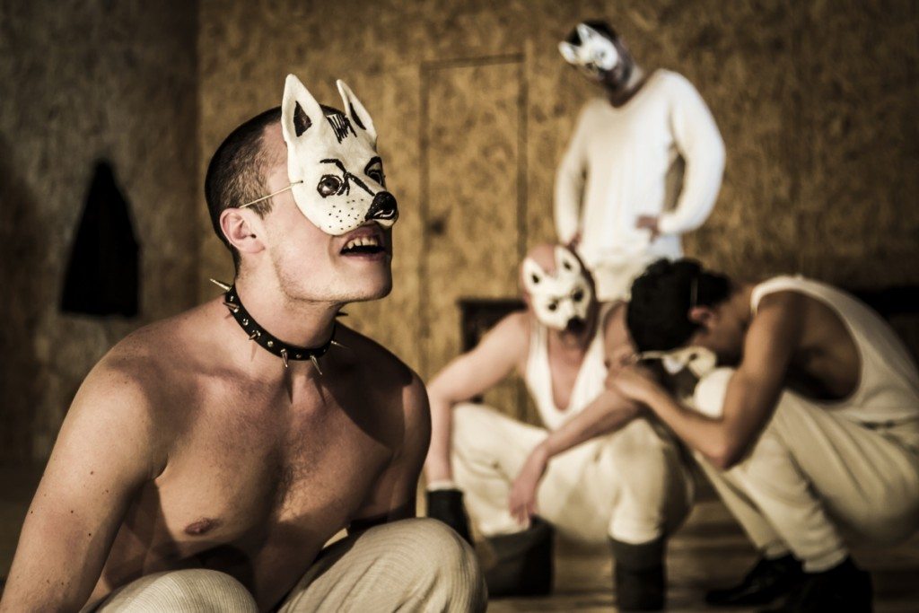 Seine 11köpfige, rein männlich bestückte Truppe macht das, was Theater schon immer ausgezeichnet hat: Sie erweckt eine große Anzahl an Figuren zum Leben. Egal ob Beamte oder Ehefrauen, Gutsbesitzer, Dienerinnen oder auch eine ganze Hundemeute. Die Männer jeden Alters spielen, was das Zeug hält. Und vermitteln ihr Können in ihrer eigenen, den meisten Menschen im Publikum nicht vertrauten Sprache. Über der hohen Bühne des Volkstheaters können die Untertitel mitgelesen werden. Eine Erschwernis, wenn man gleichzeitig die Bühnenpräsenz der Schauspieler beurteilen möchte. Die ist jedoch so stark, dass der Blick ruhig mehrfach auf- und abschweifen kann, ohne dass man das schauspielerische Feuerwerk auf der Bühne nicht mitbekäme.