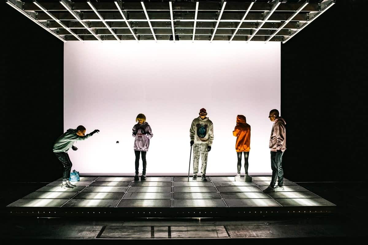 Die junge Autorin Enis Maci (geb. 1993 in Gelsenkirchen), die mit der Rohfassung ihres Textes „Mitwisser“ 2017 das Hans-Gratzer-Stipendium erhielt, gestaltete diesen in einem Workshop mit Kathrin Röggla zu einem abendfüllenden Stück, das nun am Schauspielhaus uraufgeführt wurde. Darin schlüpfen Simon Bauer, Lili Epply, Steffen Link, Vassilissa Reznikoff und Sebastian Schindegger in viele verschiedene Figuren. Angefangen von Tätern und Täterinnen bis hin zu jenen Nachbarn oder Freunden, die ein gesellschaftliches Amalgam bilden, das das Grauen zwar nicht erklären, zumindest im Nachhinein aber ausgiebig beschreiben kann.