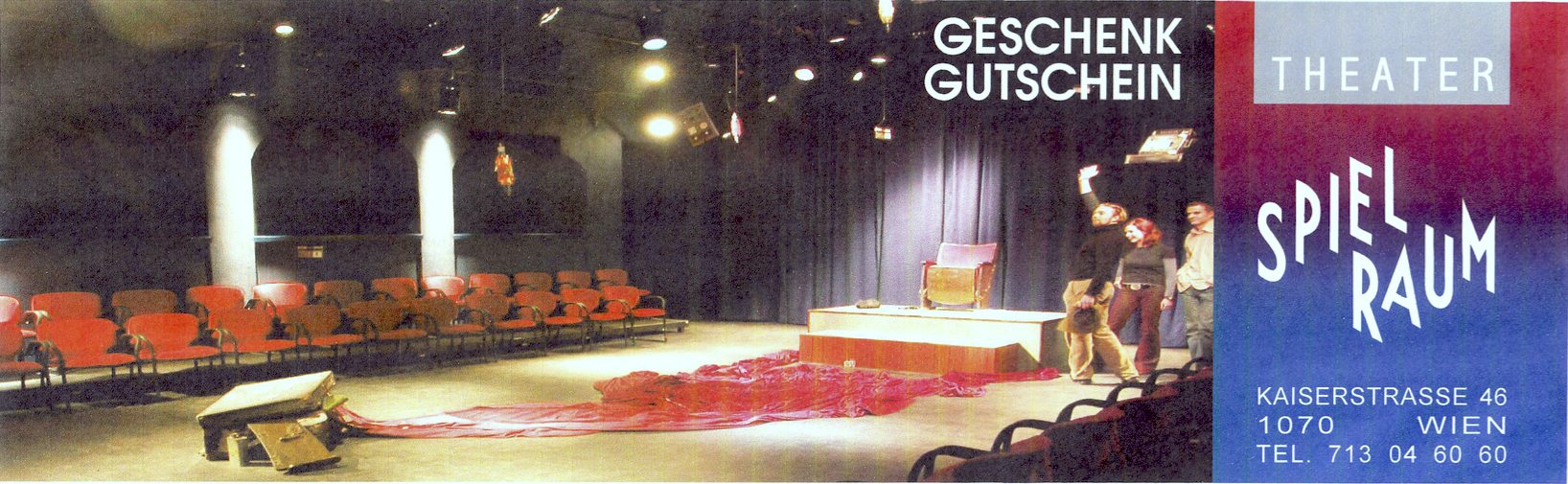 Gutschein für eine Matinée im Theater Spielraum direkt im Theater oder telefonisch unter 01-713 04 60 60 .