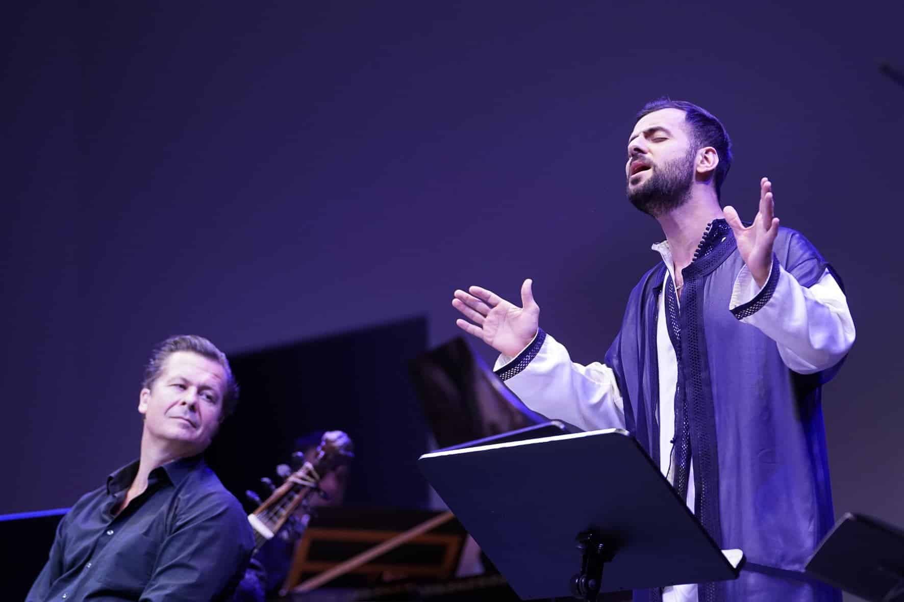 Der syrische Musiker Rebal Alkhodari spielte Letztere nicht nur, sondern setzte dem musikalischen Geschehen auch arabische Gesangsglanzlichter auf. Dabei wechselte er nahtlos von der Brust- in die Kopfstimme, in welcher er jene unzähligen Arabesken mit Leichtigkeit wiedergab, die diese Musik so unverwechselbar macht und auszeichnet. Zwischenapplaus nach jeder Darbietung machte klar, wie sehr das Publikum seine Auftritte zu schätzen wusste. Als herausragend im Armonico Tributo Ensemble ist Michael Oman zu nennen, dessen Blockflötenspiel nicht nur virtuos, sondern höchst lebendig und mitreißend war. Es dürfte kein Zufall gewesen sein, dass die österreichische, musikalische Abordnung auf der Bühne der „orientalischen“ zahlenmäßig überlegen war.