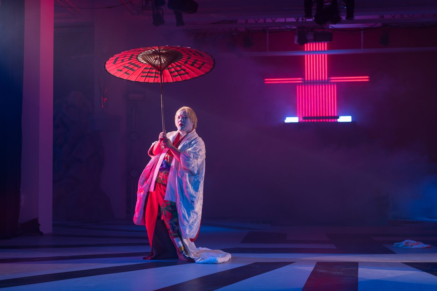 Dieses teilte sich – bei den großen Produktionen – in Festwochenbesuchende, für die diese Zeit schon seit Jahren ein Fixpunkt in ihrem kulturellen Kalender darstellt und auffallend viele junge Menschen. Letztere waren es auch, die so mancher Publikumsflucht von älteren Semestern standhielten und das Ende der Produktionen mit langem Applaus bedachten. So geschehen bei Ishvara des Chinesen Tianzuho Chen, das neben Sitzfleisch auch die Bereitschaft erforderte, sich auf eine junge, trashige Ästhetik einzulassen, in der jede Menge Verweise quer durch mehrere Kulturen angesiedelt waren.