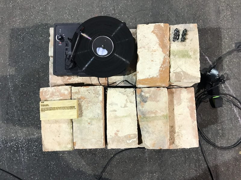 Das „Performeum“ glänzte neben seinen Performances mit einer Ausstellung, die bei der Documenta in Kassel sofort akzeptiert worden wäre. Hervorzuheben dabei ist „…struggle of memory against forgetting“ der jungen Südafrikanerin Dineo Seshee Bopape. Darin verarbeitete sie Goldfolie, Ziegelsteine, Keramik und getrockneten Lehm und integrierte eine Reihe von alten Plattenspielern und Platten. Darauf zu hören waren Meeresgeräusche sowie der Ruf des Quetzals, einem Vogel, um den sich Freiheitsmythen ranken. Auf kleinen Holztäfelchen waren Jahreszahlen und die Key-Daten von Angriffen auf unterschiedliche, afrikanische Länder und Stämme festgehalten, sowie die Versuche, sich dagegen zur Wehr zu setzen. Wie auch bei den „Gedenksteinen“, die in europäischen Städten, im Boden eingelassen, an Opfer des Nazi-Terrors erinnern, musste man sich auch bei der Installation von Bopape bücken, um die Schrift lesen zu können. Diese Körperhaltung, bei der sich auch unweigerlich das Haupt senkt, ist das Mindeste an Respekt und Ehrerbietung, das die Besuchenden den Opfern dieser Geschehnisse entgegenbringen konnten.