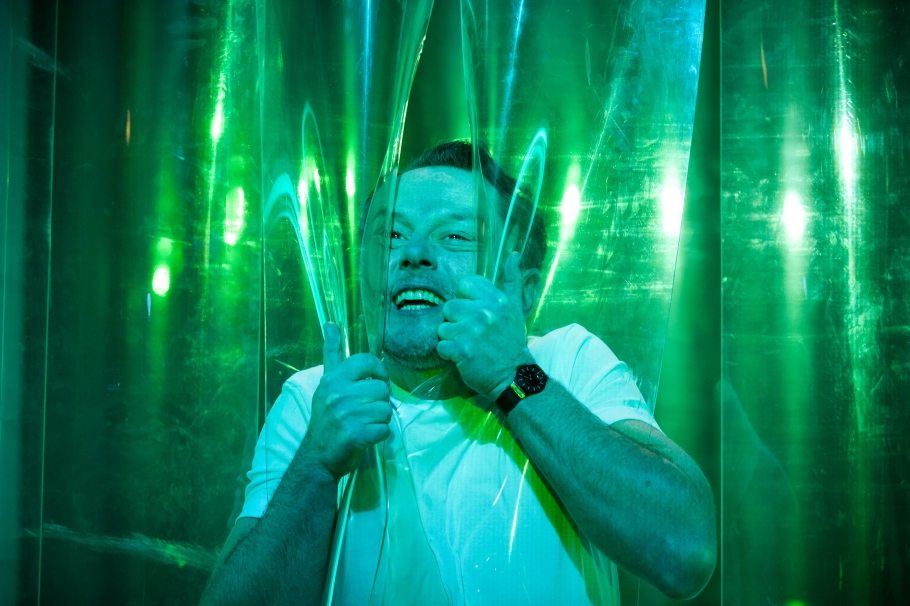 Adi (Peter Knaack) und Hans (Marcus Kiepe) heißen die beiden Gegenspieler in seinem Butterstück. Ersterer ist ein Romantiker und Revoluzzer, der plant, eine Butterskulptur aus gestohlener Butter vor der Molkerei aufzustellen. Eines Nachts, als Akt der Rebellion gegen all das, was der Butter und ihm angetan wird. Automatisierung, Fremdbestimmung, die Arbeit in einer sterilen Umgebung und das Getaktetsein nach der Vorgabe der Maschinen. All das wird zu viel für ihn. Sein Joghurtfüttern an fremde Menschen im Zug, mit dem er täglich pendelt, ist für ihn mehr als nur ein Akt der Nahrungsspende. Es ist eine Geste, „um zum anderen durchzudringen“, wie er sich gegenüber seiner jungen Liebe Karina ausdrückt. Die zweite Geste, die er auch auf der Bühne zeigt, ist die geballte Faust, die er nicht mehr imstande ist in der Öffentlichkeit zu vollführen. „So träge macht die Butter“. Hans, ein stupider Säufer, der ebenfalls in der Molkerei arbeitet, ist besessen von seinem Treiben „im Hobbykeller“. Einem Ort, der in Österreich in den letzten Jahren nicht erst durch Ulrich Seidls Film in Verruf geriet. Seine unterdrückten Aggressionen warten nur auf die nächst beste Gelegenheit ausgelebt zu werden. In seinem Vorgesetzten, Dr. Huber (Michael Masula), findet er einen Verbündeten, der Adi zur Räson bringen will. Zu sehr zeigt dieser ihm seine Verachtung für das, was in der Molkerei vor sich geht, zu wenig buckelt der Aufmüpfige vor dem geltungssüchtigen Manager.